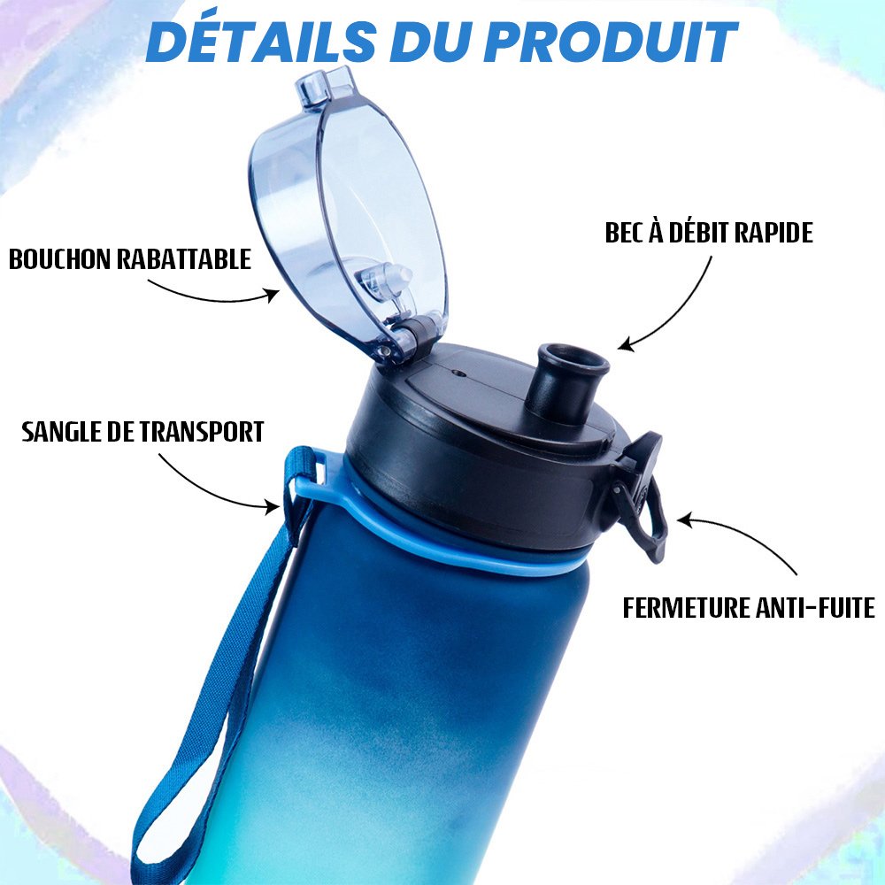 Elle adopte un design humanisé de flip-top étanche, qui peut être facilement ouvert et fermé d'un seul coup de main, et la forte étanchéité évite l'embarras d'une fuite d'eau dans le sac. En outre, le corps de la bouteille est fabriqué en matière sûre, 100 % sans BPA, non toxique et inodore, ce qui permet aux enfants de boire de l’eau en toute sécurité et aux adultes de l’utiliser plus sainement.Que ce soit pour les trajets quotidiens ou pour le sport et la remise en forme, vous pouvez boire en toute sécurité à tout moment et en tout lieu.