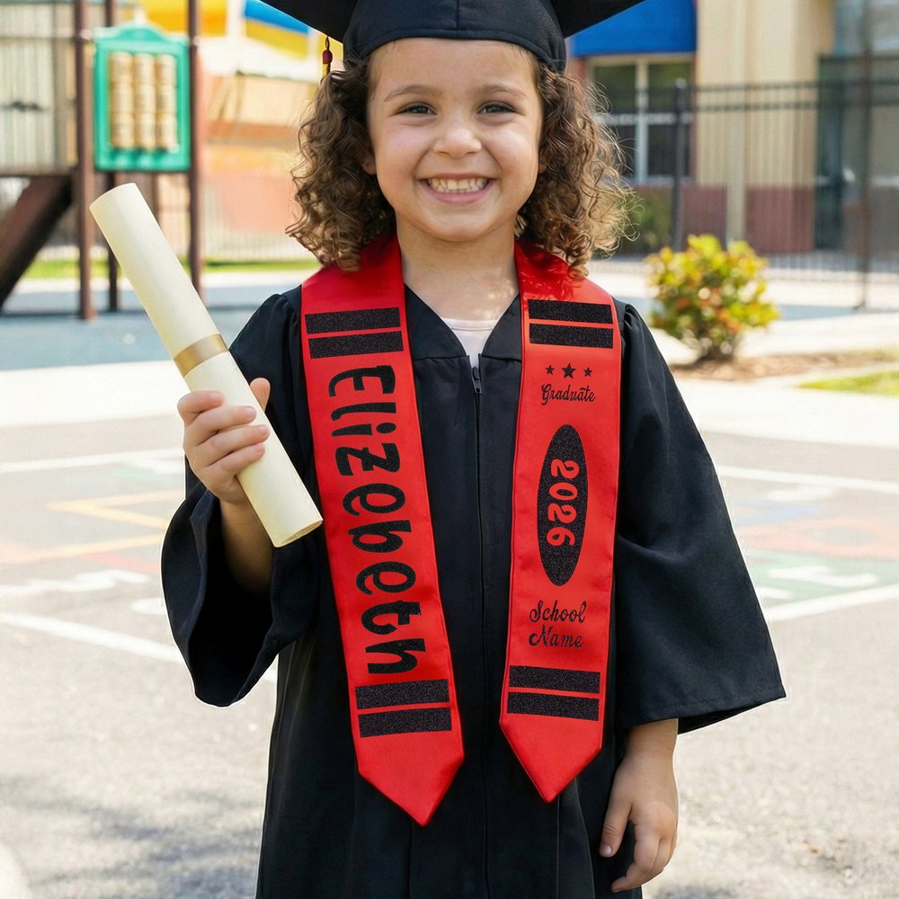 Conçues spécialement pour les cérémonies de remise des diplômes de l'école maternelle et du jardin d'enfants, ces écharpes peuvent être utilisées comme écharpes de cérémonie, accessoires de photo ou décorations familiales, et illustrent parfaitement la première étape importante franchie par un enfant.