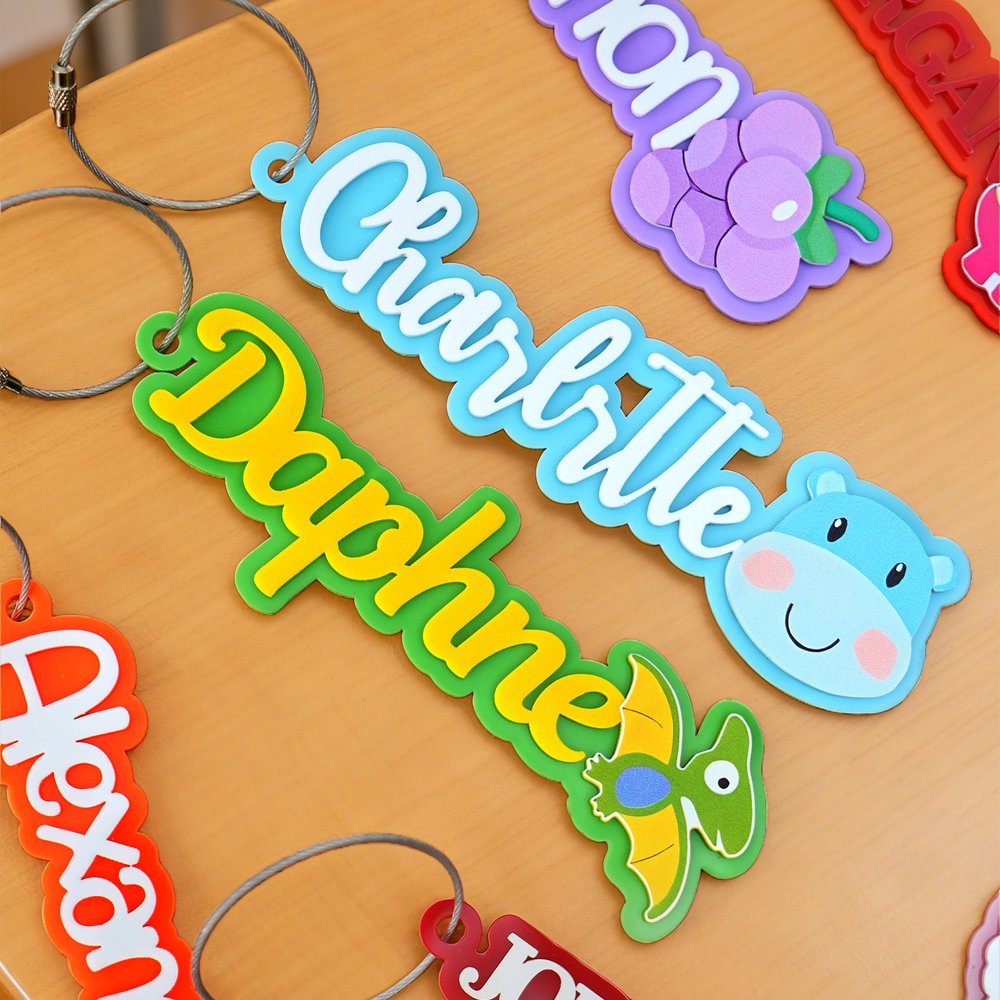 Fabriqué en acrylique de haute qualité, il présente une texture robuste et résistante à l'usure, qui ne se déforme pas et ne se casse pas. Fabriqués avec précision, le nom et les icônes présentent des couleurs vives et riches qui résistent à la décoloration au fil du temps. Compact et léger, il peut être attaché à un sac à dos, à un sac-repas ou à d'autres objets, ce qui permet de concilier praticité, durabilité et commodité.