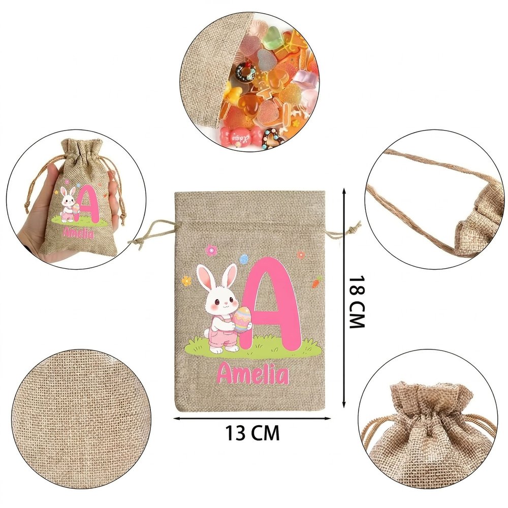Avec ses adorables lapins, lettres et œufs de Pâques, le sac arbore des couleurs vives et éclatantes. Il est également possible de le personnaliser au nom de votre enfant, créant ainsi une atmosphère festive que les enfants adoreront instantanément.