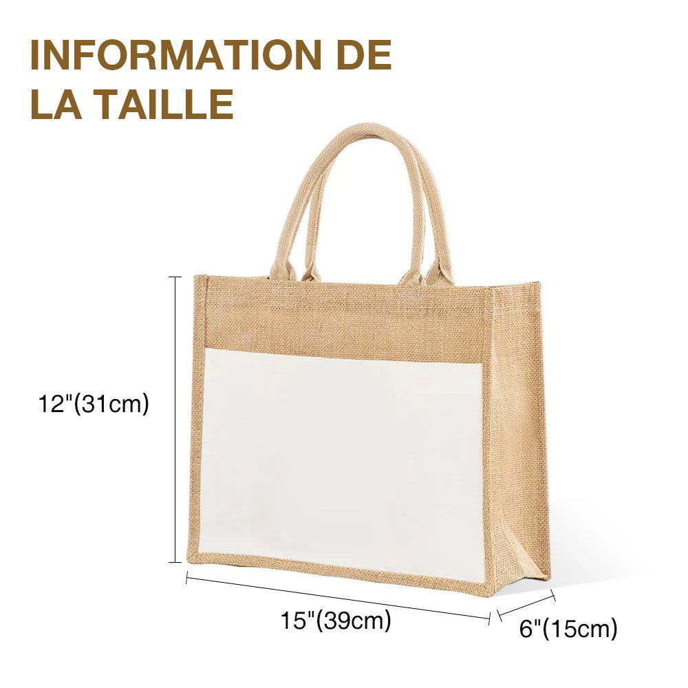 Le sac fourre-tout est fabriqué en jute, ce qui garantit sa durabilité et son respect de l'environnement. Il peut résister à un usage quotidien et possède une légère fonction anti-éclaboussures, ce qui permet de protéger le contenu du sac. L'utilisation de matériaux durables est conforme aux valeurs de Pâques, qui célèbre le renouveau et la nature.