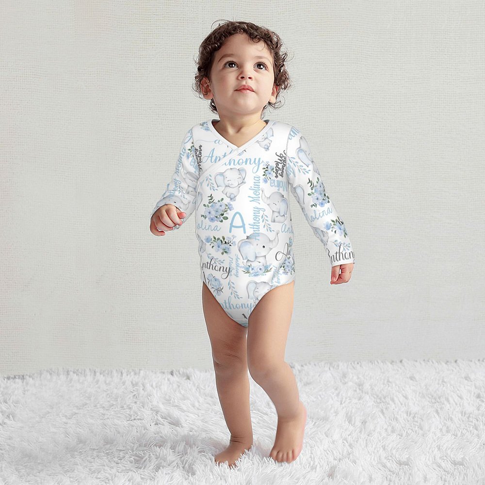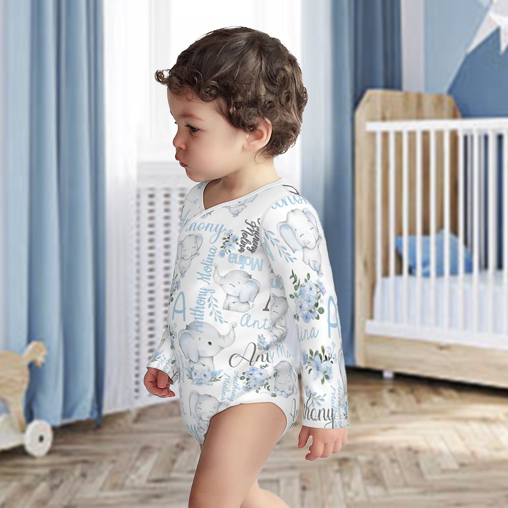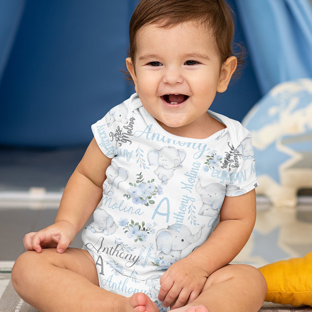 Notre adorable grenouillère en forme d'éléphant est un cadeau adorable et personnalisé pour les bébés. Doté d'une charmante fleur et d'un mignon éléphant, il évoque la joie et la vitalité. Ajoutez le nom et l'initiale du bébé pour créer un cadeau unique.
