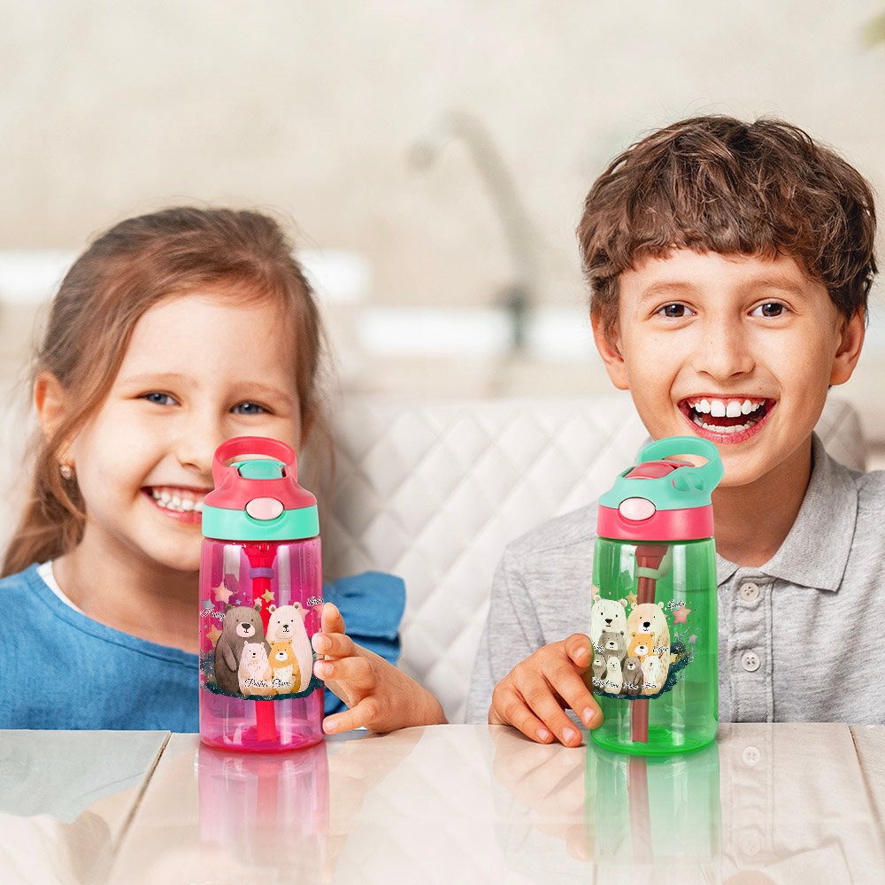 Notre bouteille d'eau peut être personnalisée avec les noms de 1 à 8 membres de la famille et de 1 à 8 petits ours mignons, pleins d'innocence et de chaleur enfantine. Chaque fois qu'un enfant boit de l'eau, il a l'impression d'être enveloppé dans l'amour de la famille.