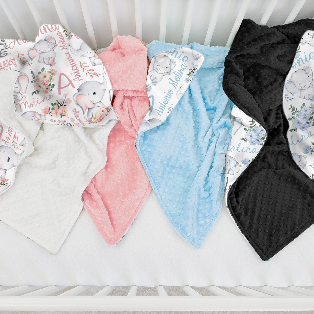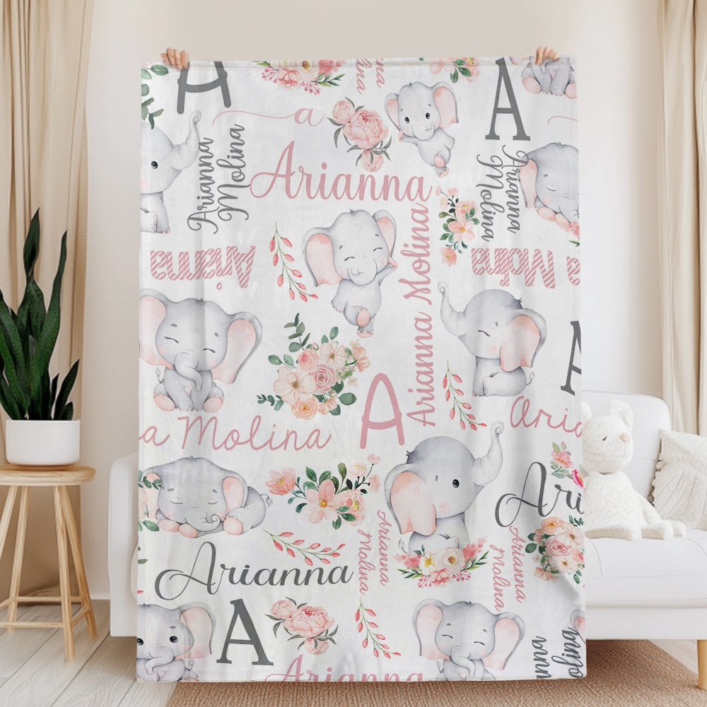Que ce soit à l'occasion d'une fête de naissance, d'un anniversaire ou simplement pour le plaisir, cette couverture est le cadeau idéal pour les garçons et les filles. C'est un cadeau unique et attentionné que les nouveaux parents apprécieront. Elle peut également servir d'élément décoratif dans une chambre d'enfant. L'adorable motif floral de l'éléphant et la touche personnalisée en font un excellent ajout à la collection de tout bébé. Surprenez-les avec ce cadeau fantastique et regardez leurs visages s'illuminer.