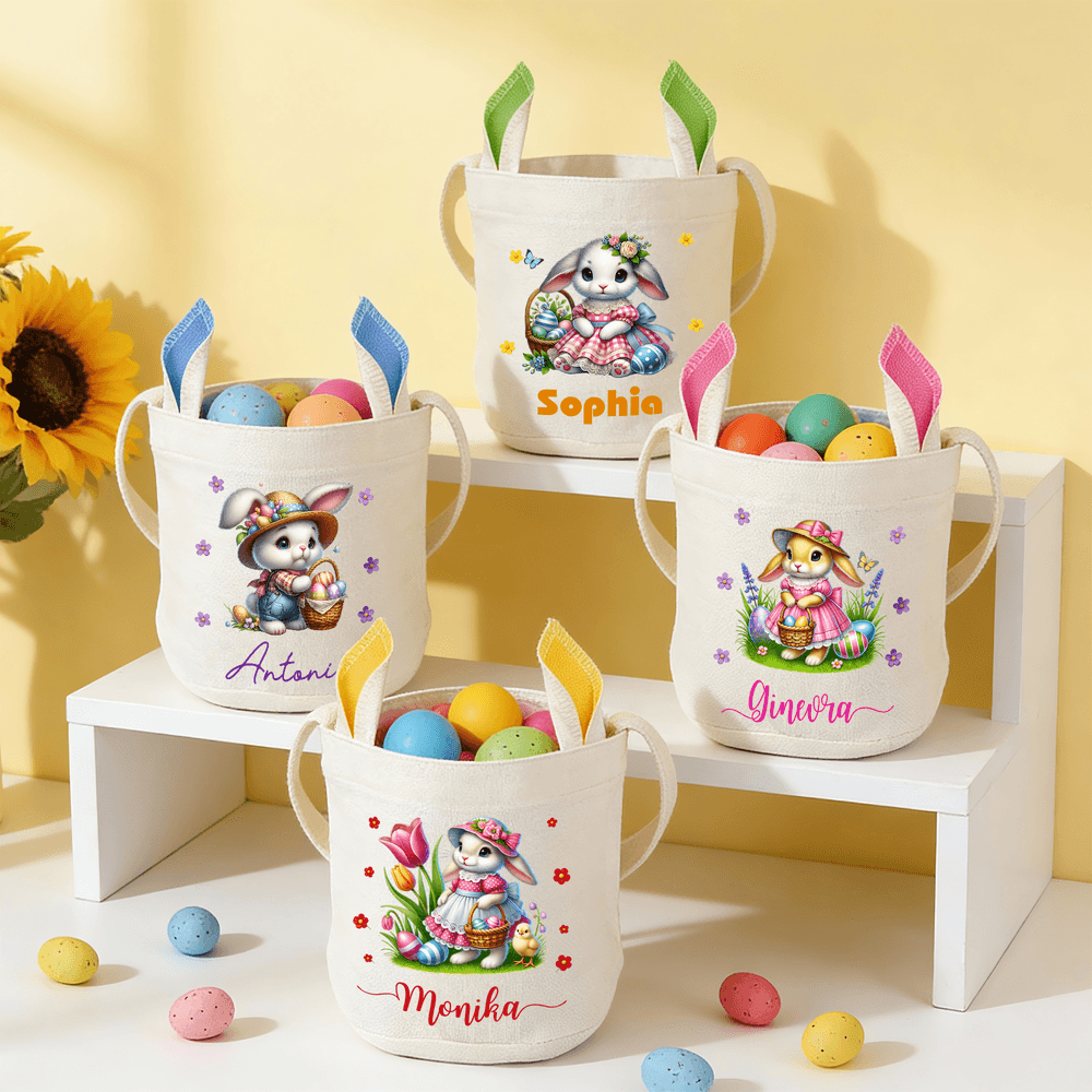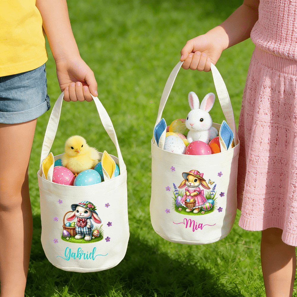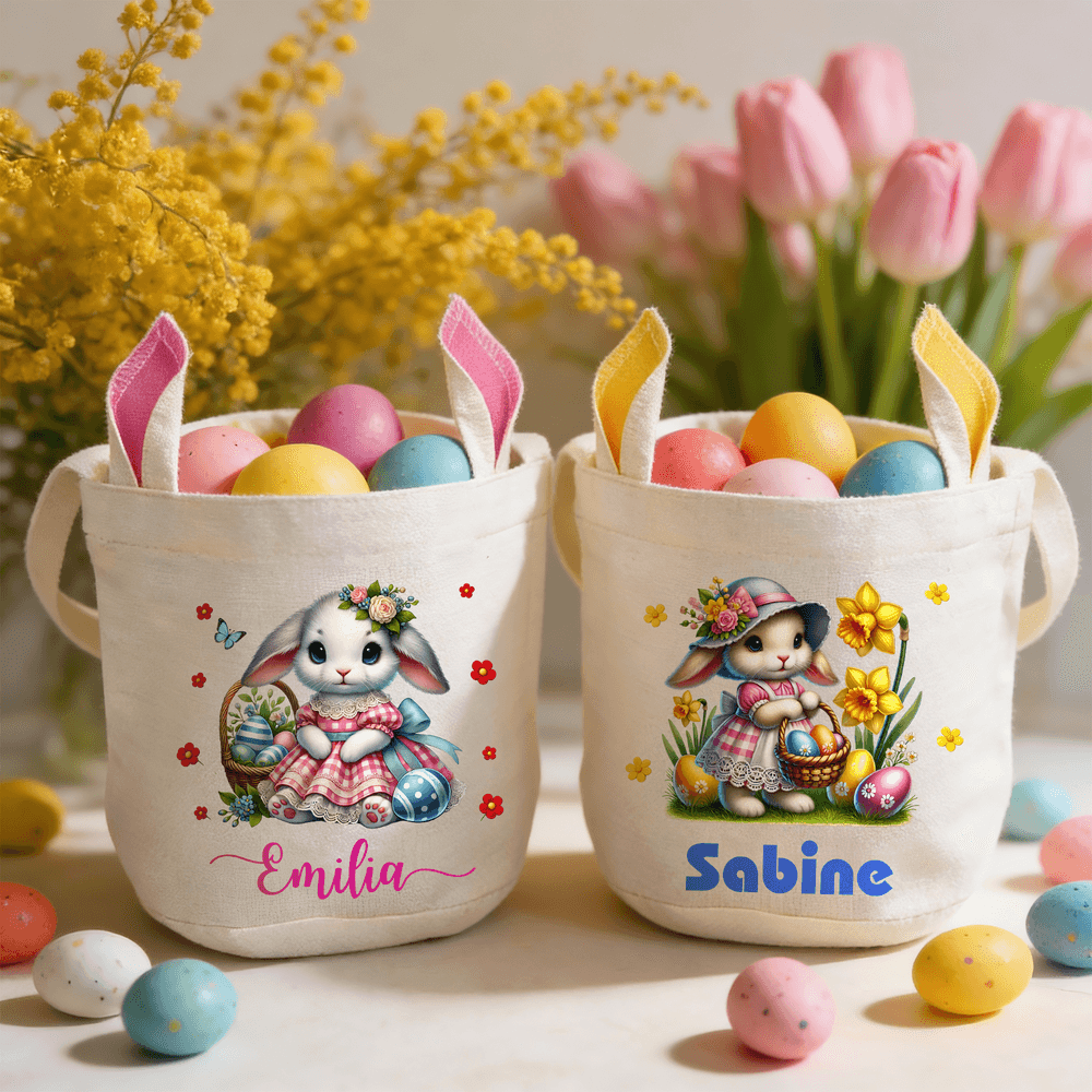 Panier de Pâques personnalisé avec nom et oreilles de lapin Accessoires de chasse aux oeufs Cadeau de Pâques pour enfants