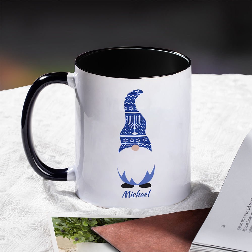 Ce mug utilise un mignon motif de gnome pour ajouter une touche décorative et unique au mug. L'utilisation de deux couleurs principales, le bleu et le blanc, exprime le respect et la célébration des traditions culturelles et religieuses juives. Le mug peut également être personnalisé avec un nom et un texte pour le rendre encore plus distinctif.
