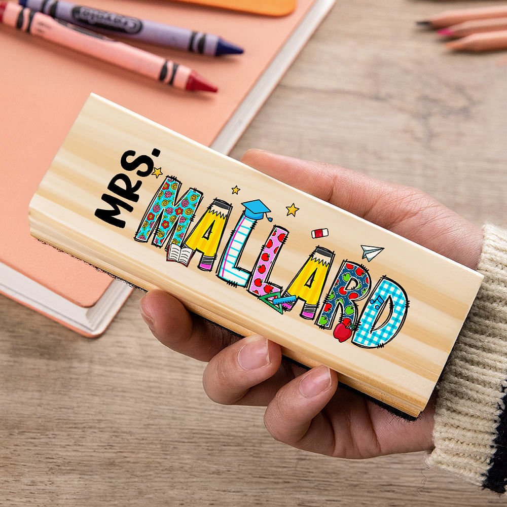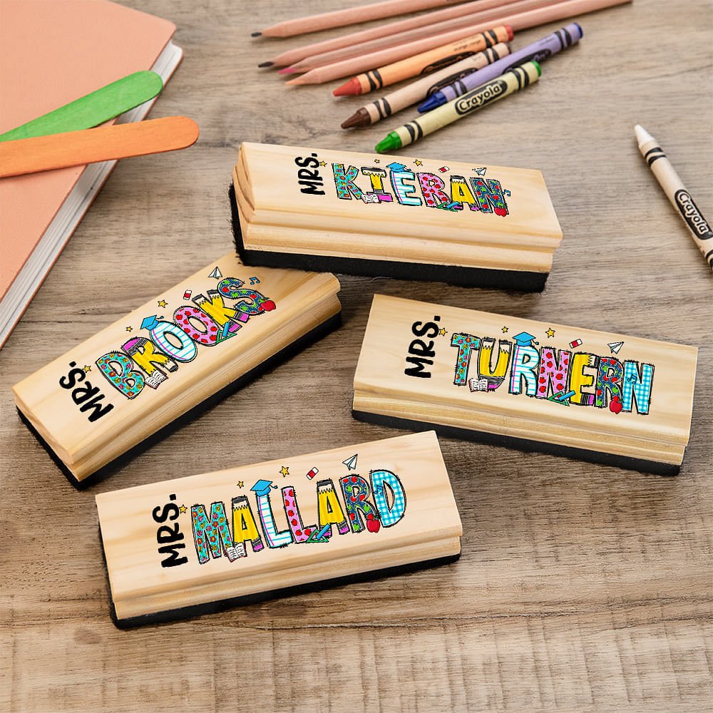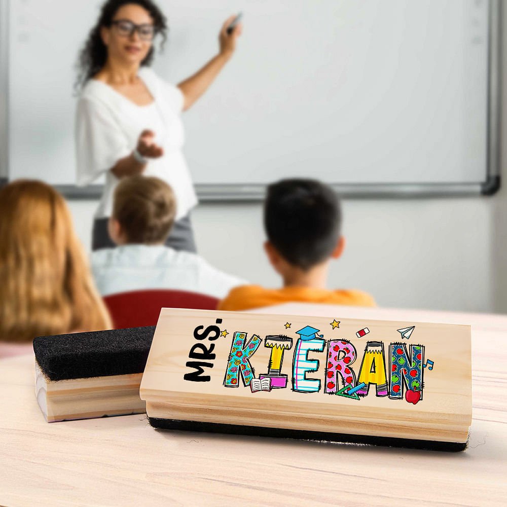 Cette gomme à tableau personnalisée présente un joli motif inspiré des graffitis, ajoutant une personnalité ludique à la salle de classe. La possibilité de personnaliser la gomme avec un nom et un titre rend ce cadeau vraiment significatif et unique.