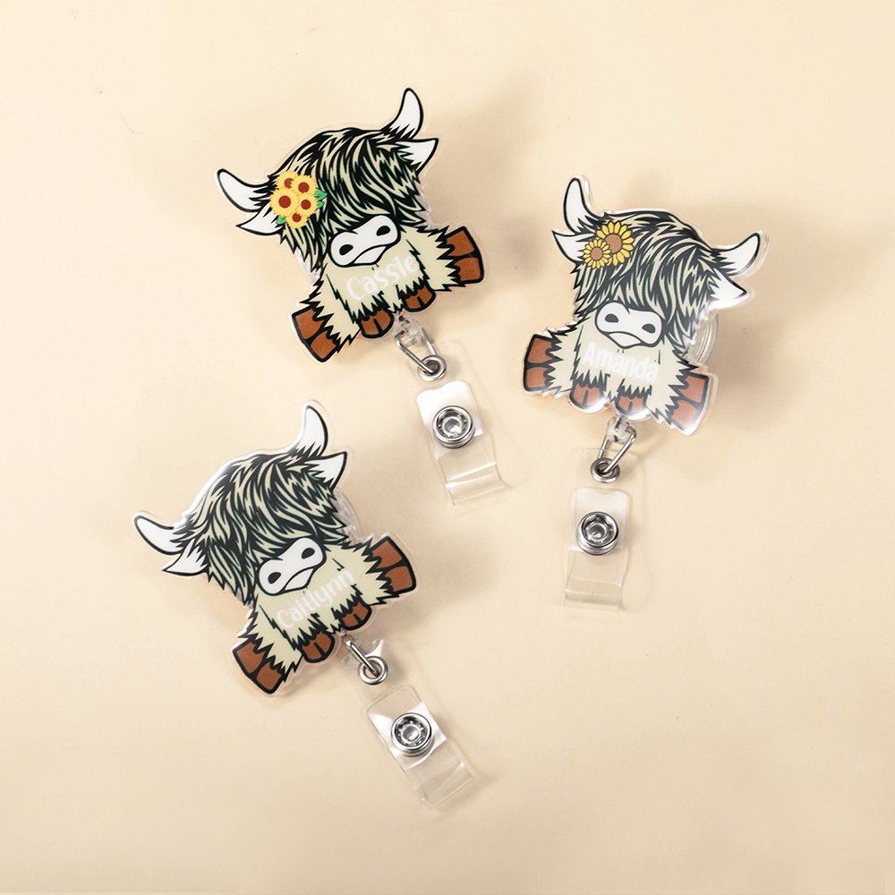 Le badge présente un adorable motif de vache Highland avec des tournesols pour un look très rustique. Vous pouvez également choisir entre deux polices de caractères différentes et y ajouter votre nom pour rendre le badge plus accrocheur et unique.