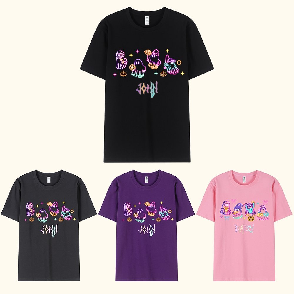 Ce T-shirt présente des couleurs néon vives et un motif de fantôme mignon, qui attire instantanément l'attention et devient l'accessoire le plus accrocheur lors de la fête d'Halloween. Il peut également être personnalisé avec un nom. Qu'il s'agisse d'un défilé nocturne dans la rue ou d'une fête en intérieur, il attirera l'attention des enfants et leur permettra de montrer leur personnalité.