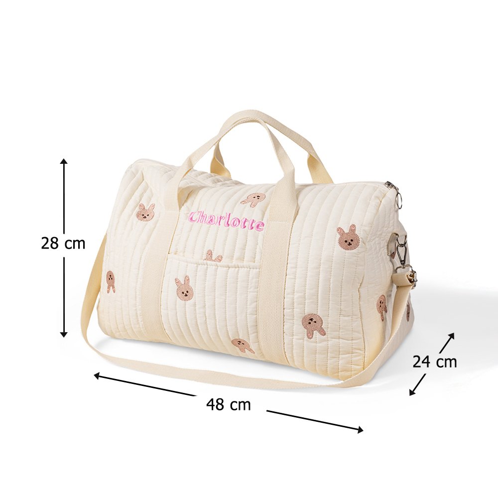 Surprenez la maman ou la future maman avec cet adorable sac d'hôpital, qui constitue un cadeau pratique et attentionné. Ce sac d'hôpital pour nouveau-né est orné de broderies de lapins, d'ours ou de feuilles d'olivier, qui ajoutent de la douceur et de la fantaisie à l'ensemble. Disponible en 27 couleurs de broderie, le délicat travail de broderie témoigne de l'attention portée aux détails. Il s'agit non seulement d'un accessoire pratique, mais aussi d'un symbole de l'amour et de l'attention portés à la maman et au bébé pendant cette période spéciale.