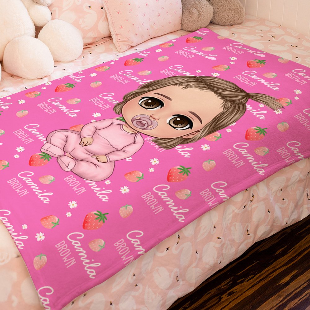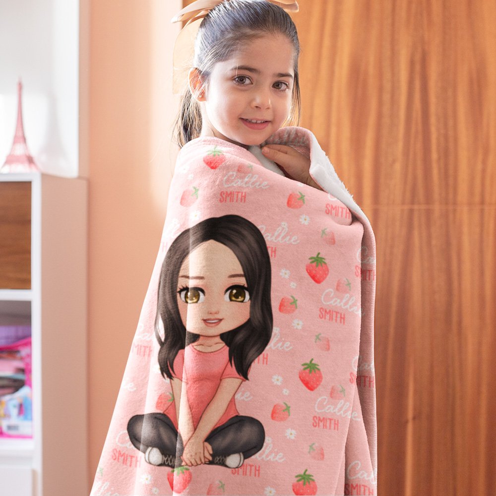 Cette couverture douce a attiré l'attention d'innombrables enfants grâce à son style unique. Les mignonnes fraises et marguerites inspirent le motif de la couverture, et les personnages de dessins animés rendent la couverture pleine de vitalité et d'esprit enfantin. Vous pouvez personnaliser le nom et le prénom de votre enfant, ainsi qu'une image de dessin animé exclusive sur la couverture, ce qui en fait un article unique, à la fois beau et plein de personnalité, qui met parfaitement en valeur le charme unique de votre enfant.