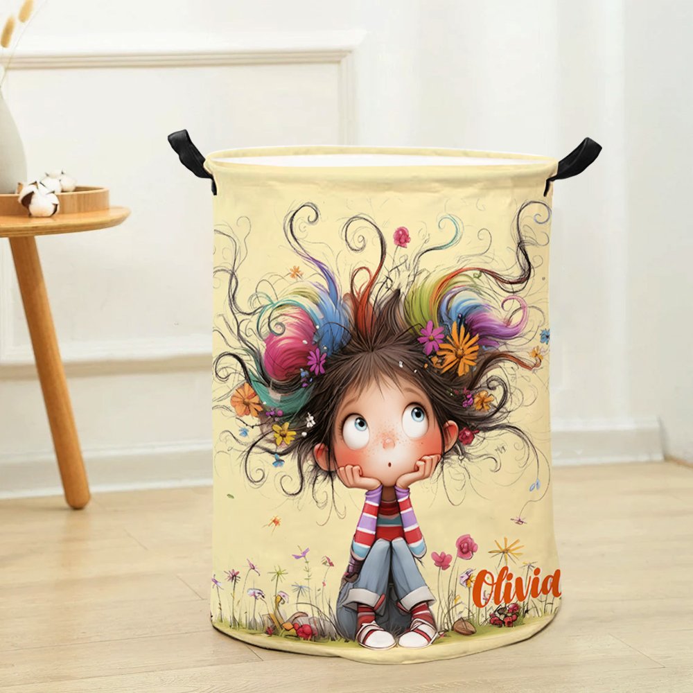 Ce panier de rangement se caractérise par une image et un nom de personnage de dessin animé unique, faisant de chaque panier de rangement une œuvre d'art unique. Chaque fille a des couleurs vives et une expression vive, ce qui ajoute de l'amusement et de la vitalité à cette corbeille de rangement.