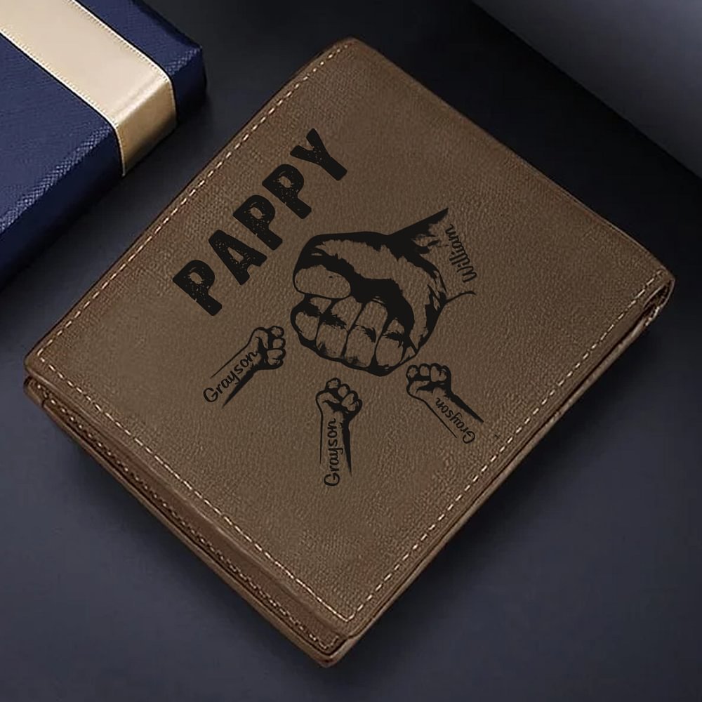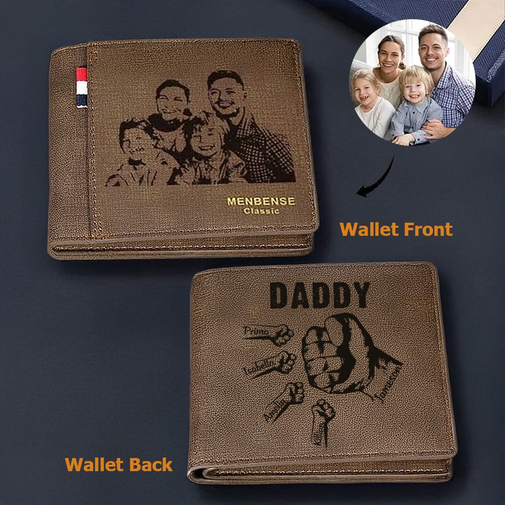 Le portefeuille est unique en ce sens qu'il représente un poing fermé, symbole de force et d'unité, plein d'affection et de respect. Vous pouvez télécharger une photo de vous et de votre famille afin que chaque membre de la famille puisse laisser sa marque sur le portefeuille. Le dos du portefeuille est imprimé avec le surnom de papa et les initiales de chaque membre de la famille, transmettant ainsi un fort sentiment d'appartenance à la famille.