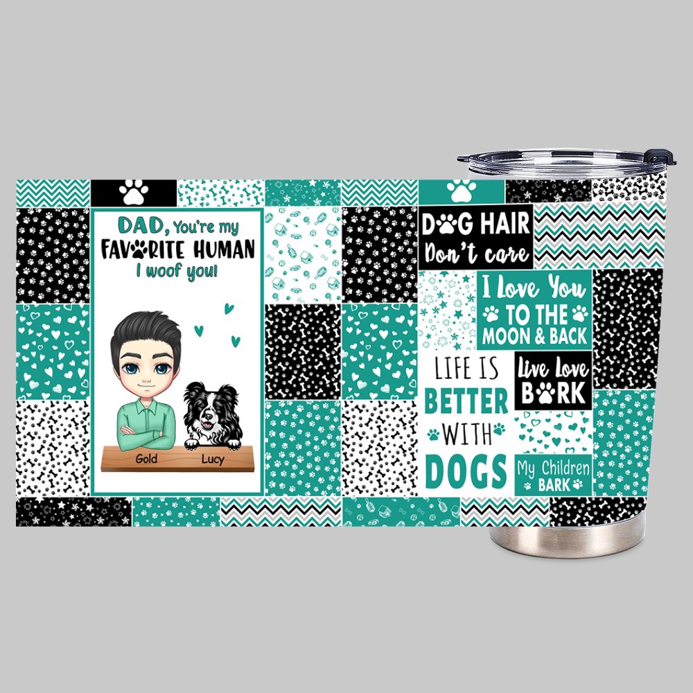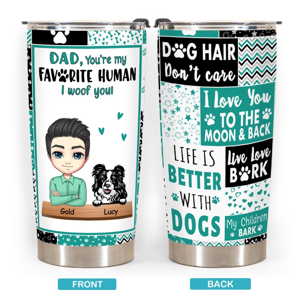 Conçu avec une impression de haute qualité qui dit "DAD, You're my FAVORITE HUMAN I Woof you", ce gobelet est également conçu pour être résistant aux éclaboussures afin que votre bien-aimé puisse le transporter partout, que ce soit à la maison, au bureau ou en voyage. C'est un cadeau idéal pour les hommes !