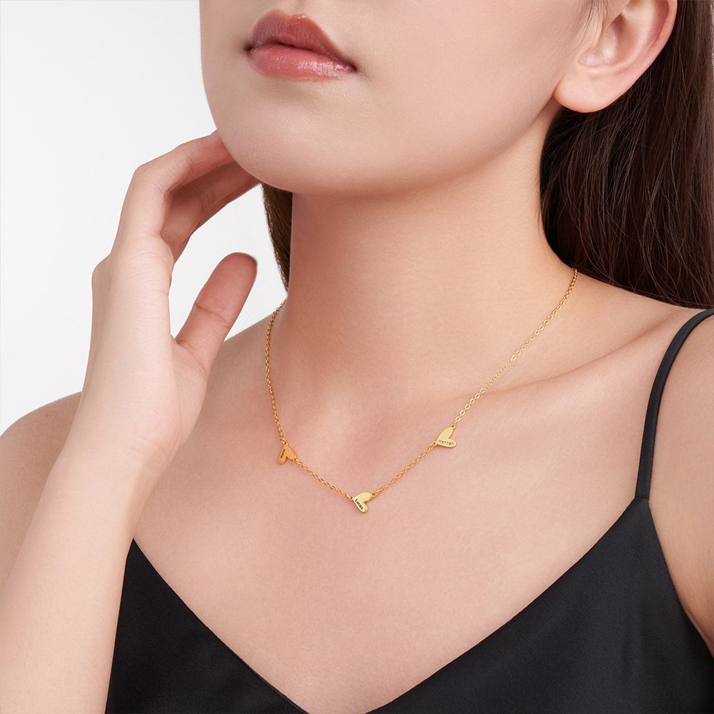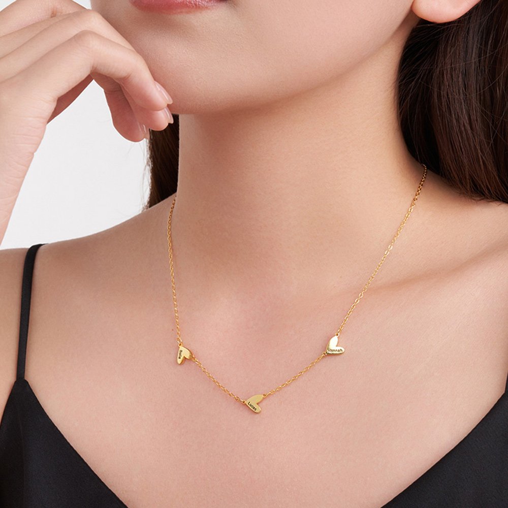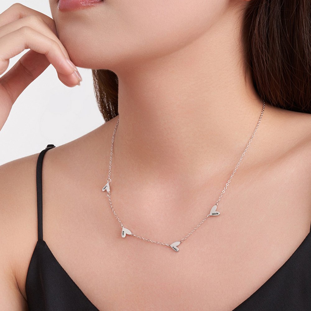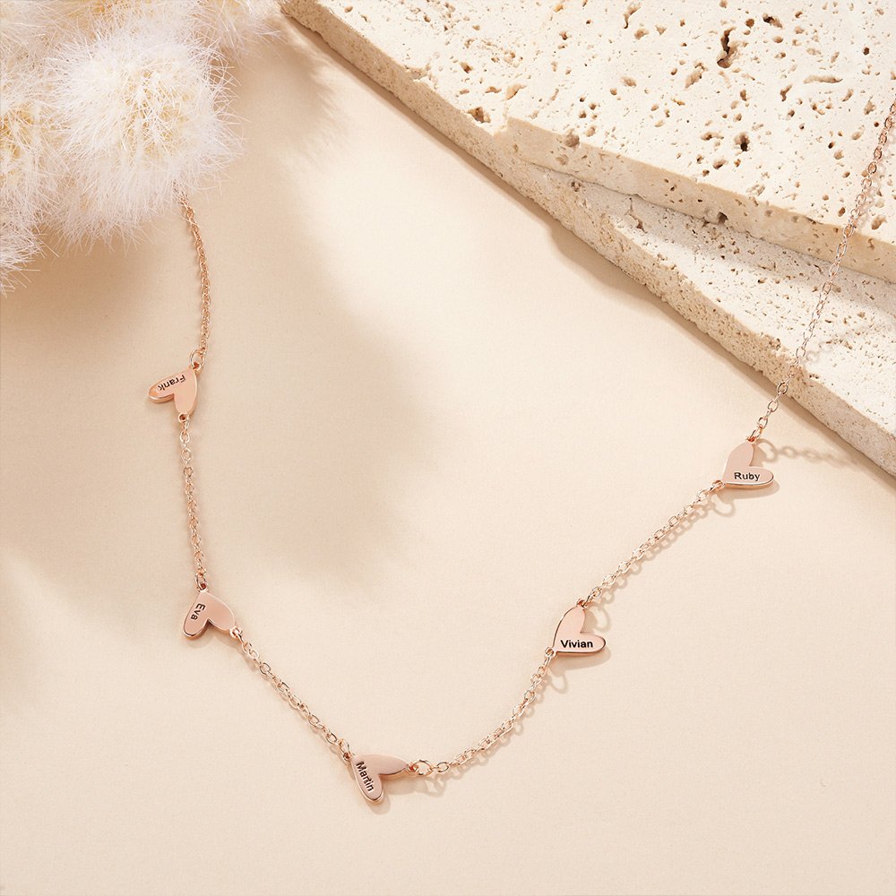 Le design de ce collier est simple mais exquis. Vous pouvez choisir de personnaliser 1 à 5 pendentifs en forme de cœur sur le collier, symbolisant l'amour et la chaleur sans fin. Chaque pendentif en forme de cœur peut être gravé d'un nom selon vos besoins, faisant de ce collier un moyen unique d'exprimer l'amour et la connexion.