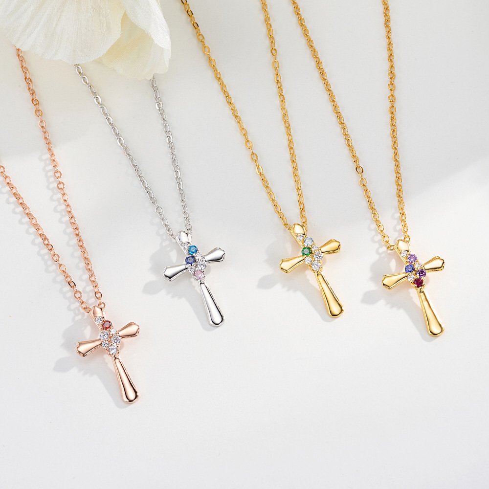 Ce collier est conçu sur la base de la forme classique de la croix et est incrusté de pierres de naissance exquises. Chaque pierre de naissance représente un mois différent et une signification symbolique personnalisée. Vous pouvez choisir de personnaliser de 1 à 4 pierres de naissance pour montrer votre goût unique et votre charme personnel.