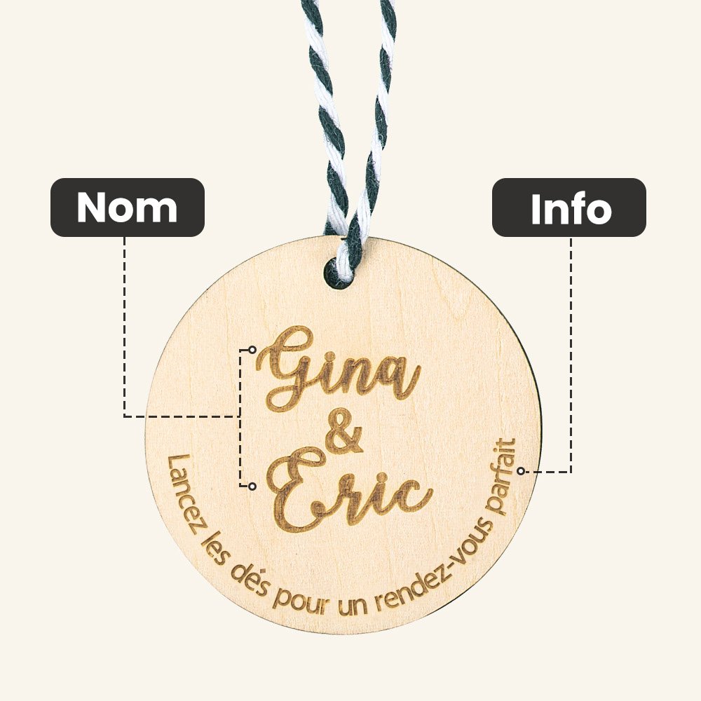 • Vous pouvez graver le nom et le texte sur l'étiquette pour vous rappeler le moment heureux ou l'utilisation des dés.