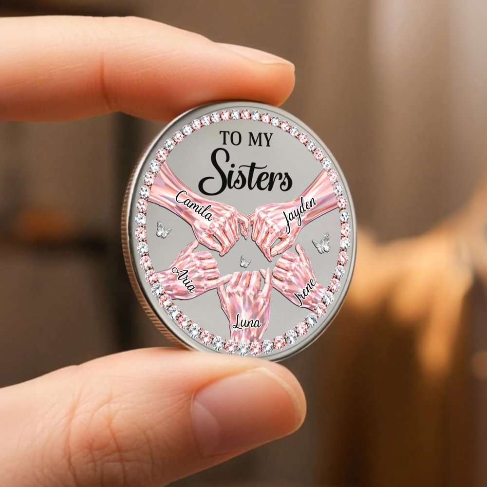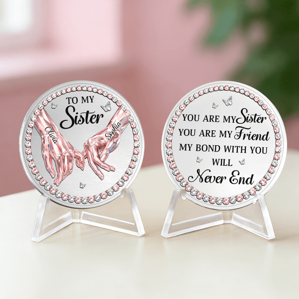 Pièce de monnaie personnalisée en forme de main de diamant avec noms et présentoir Cadeau d'anniversaire pour les amies et les sœurs