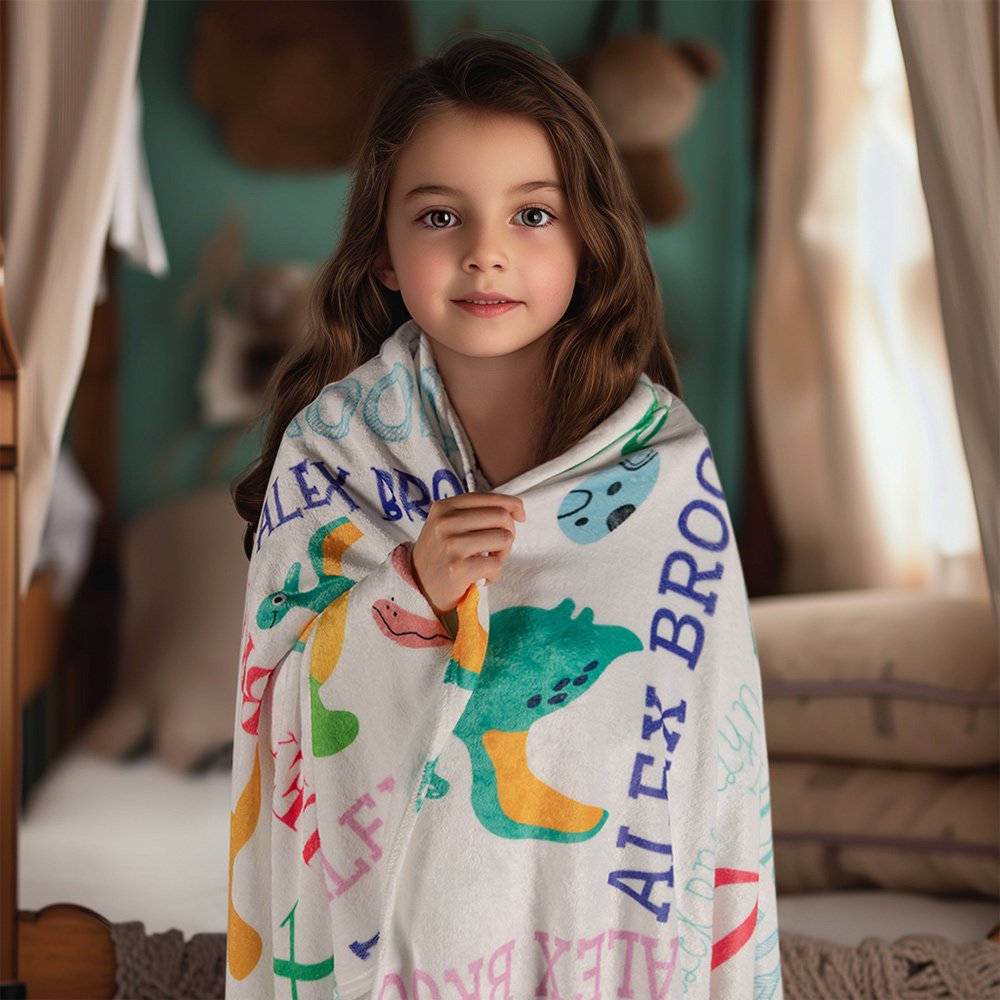 Cette couverture en forme de dinosaure est un cadeau original pour les anniversaires, les vacances ou les occasions spéciales. La combinaison du nom et des mignons dinosaures crée un cadeau personnalisé et significatif qu'ils chériront.