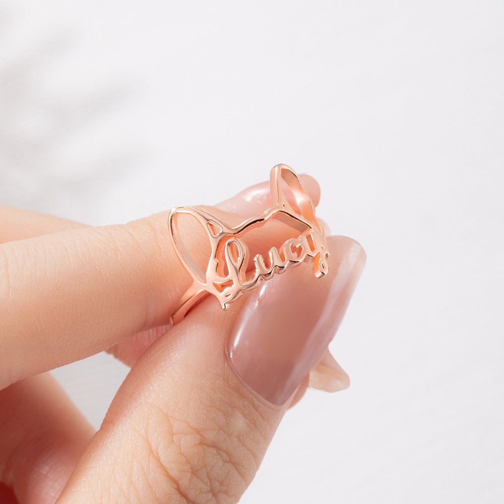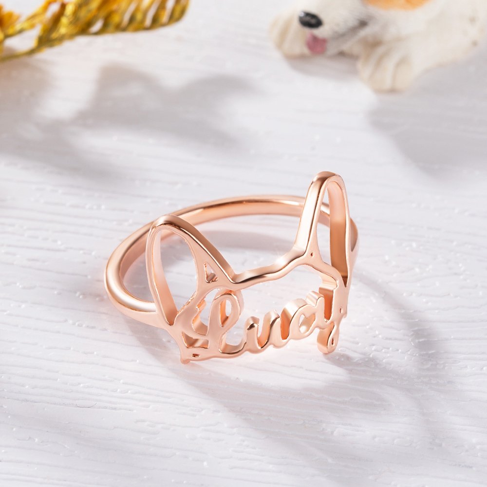 Cette bague reprend la forme des oreilles de votre chien. Vous pouvez choisir parmi 124 races de chiens ou télécharger la photo de votre chien. Nous graverons le contour des oreilles du chien.