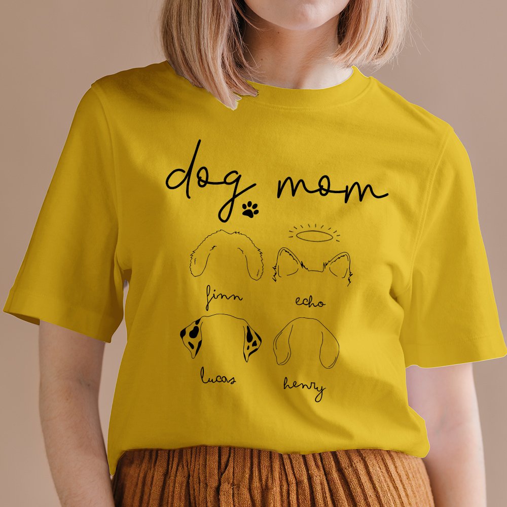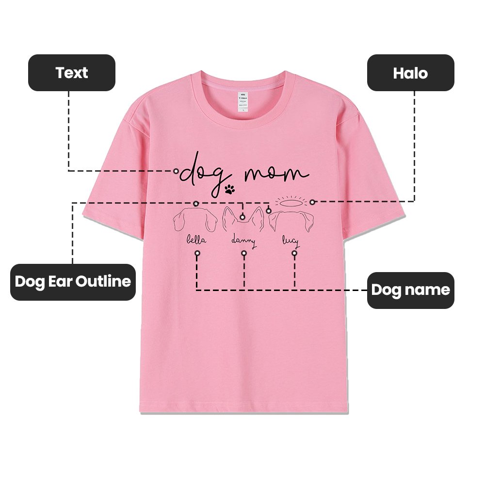 Ce T-shirt se compose de deux éléments de conception, un contour d'oreilles de chien mignon et le texte DOG MOM, qui semble simple et chic. Vous avez le choix entre 46 silhouettes d'oreilles de chien et vous pouvez personnaliser la silhouette avec 1 à 3 oreilles de chien.