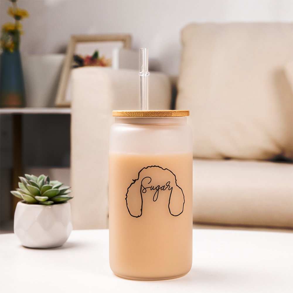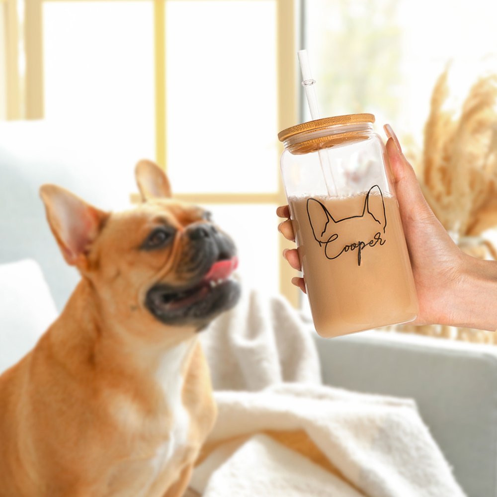 Chaque gobelet est accompagné d'une paille réutilisable et d'un couvercle en bambou, ce qui ajoute une touche écologique à votre expérience de consommation quotidienne. Que vous soyez à la recherche d'un cadeau unique ou d'un accessoire personnel, notre tasse en verre à oreilles de chien est votre choix idéal.