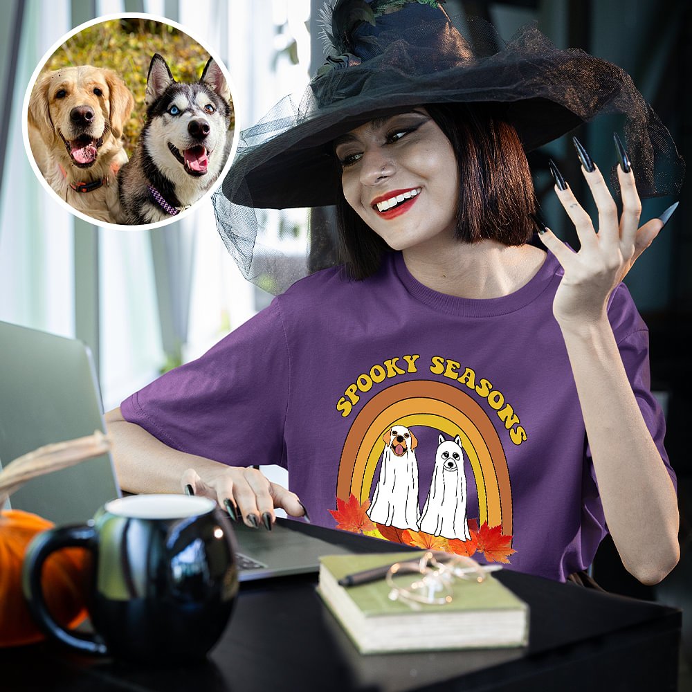 Faites passer vos célébrations d'Halloween au niveau supérieur en portant ce sweat-shirt personnalisé en forme de chien fantôme avec vos proches. Qu'il s'agisse d'une réunion de famille, d'une soirée entre amis ou d'un déguisement de couple, ces sweatshirts créeront une atmosphère festive et permettront à votre groupe de se démarquer de la foule.