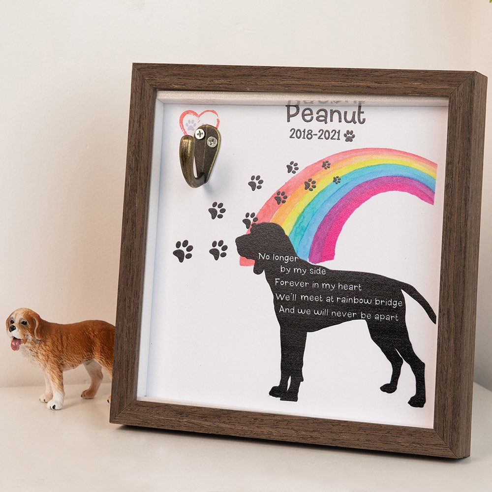 Le panneau commémoratif comporte un cadre brun. Le nom de votre animal, sa date de naissance et de décès seront ajoutés en haut du panneau et vous pouvez concevoir le texte de réchauffement sur la silhouette du chien. Ce magnifique panneau vous rappelle que même s'ils sont partis, on ne les oublie jamais ! Un merveilleux souvenir pour célébrer votre chien aimé.