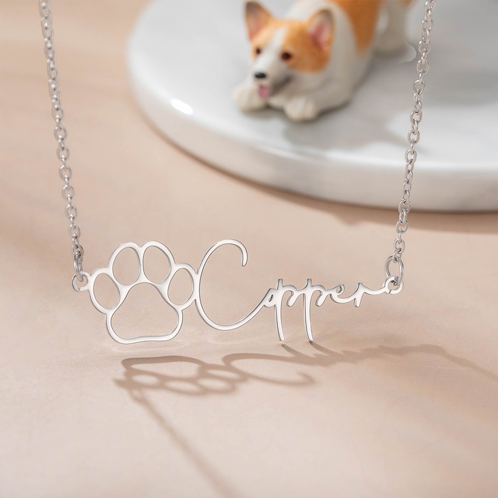 Chaîne avec Prénom Personnalisé Collier de Patte de Chien Cadeau d'Anniversaire pour les Amoureux des Animaux de Compagnie