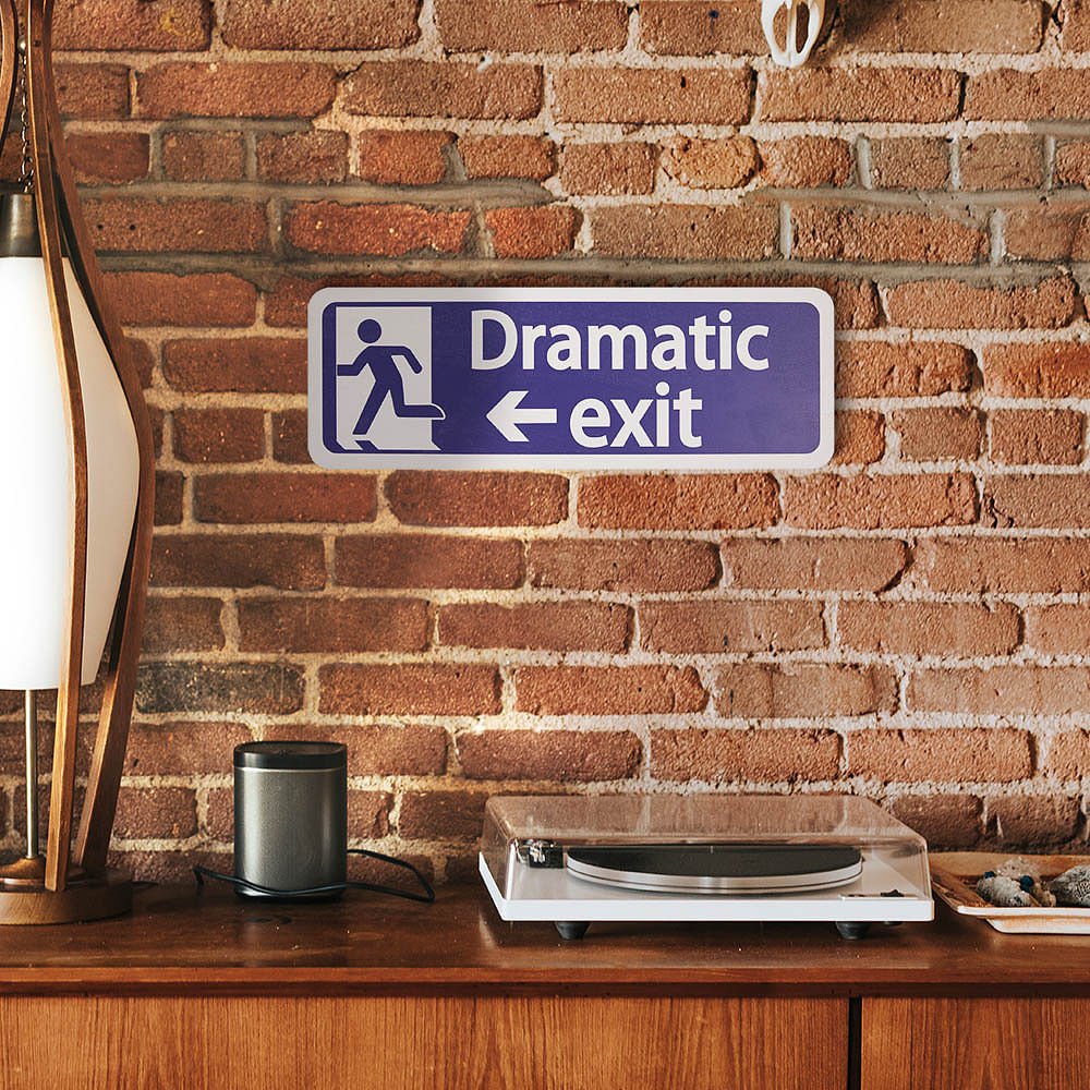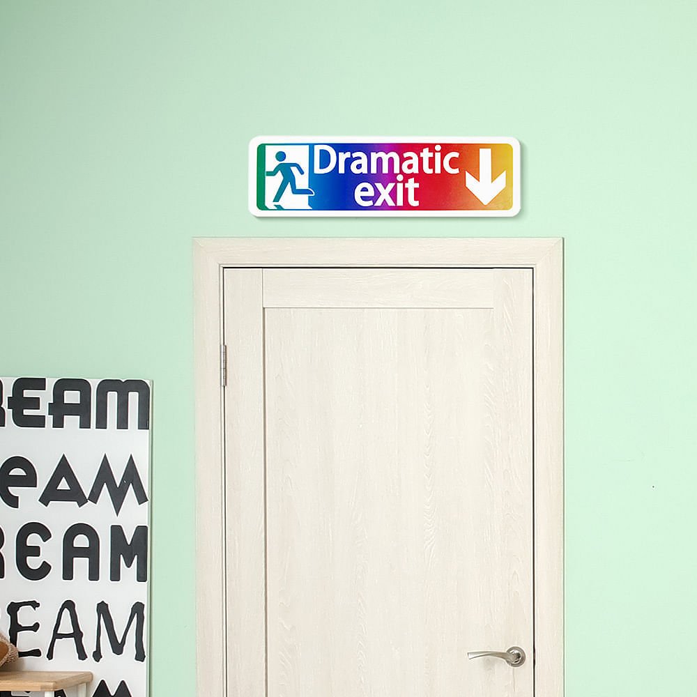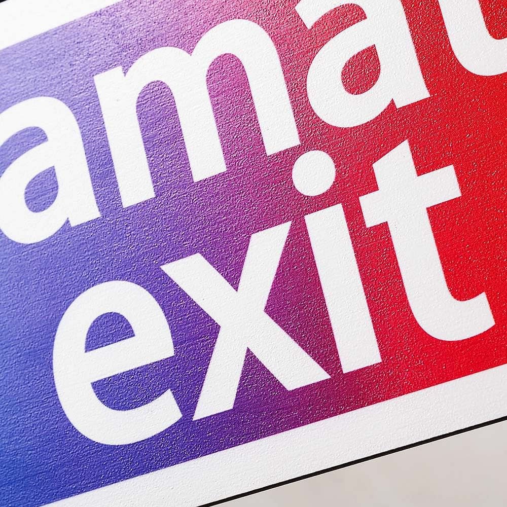 Ce panneau est une version ludique du traditionnel panneau de sortie de secours. Doté d'une silhouette de coureur humoristique, ce panneau se distingue par ses fonds vibrants - disponibles en vert classique, rose, arc-en-ciel, ombre pastel, gris, violet et sarcelle claire - ce qui en fait un ajout amusant à n'importe quel espace.