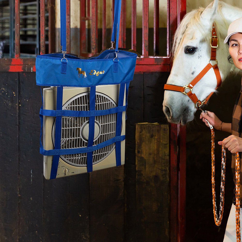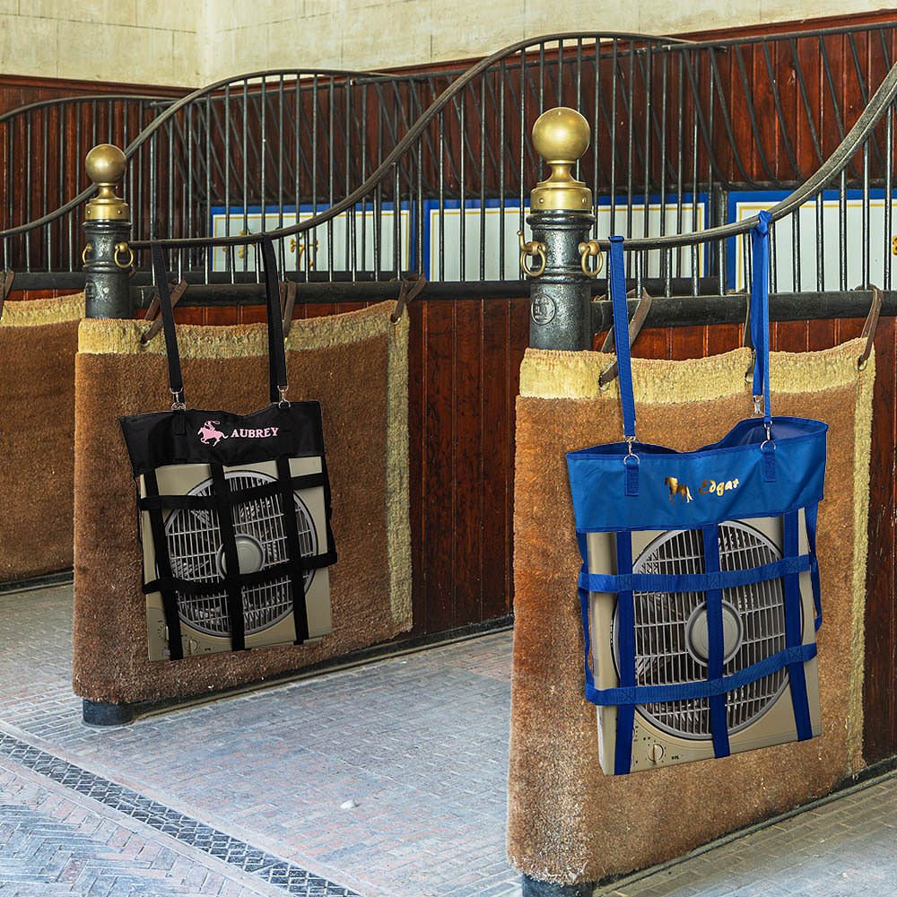 Le support de ventilateur a un design général simple et élégant. Il est suspendu et n'occupe pas d'espace au sol, ce qui convient particulièrement aux écuries disposant d'un espace limité. La structure stable du support de ventilateur peut parfaitement s'adapter aux ventilateurs d'une taille de 20" × 20" (50,8 cm × 50,8 cm), améliorant ainsi l'efficacité de la circulation de l'air dans l'écurie et créant un environnement de vie plus confortable pour les chevaux. Vous pouvez également personnaliser le nom et le motif pour rendre le support de ventilateur plus unique.