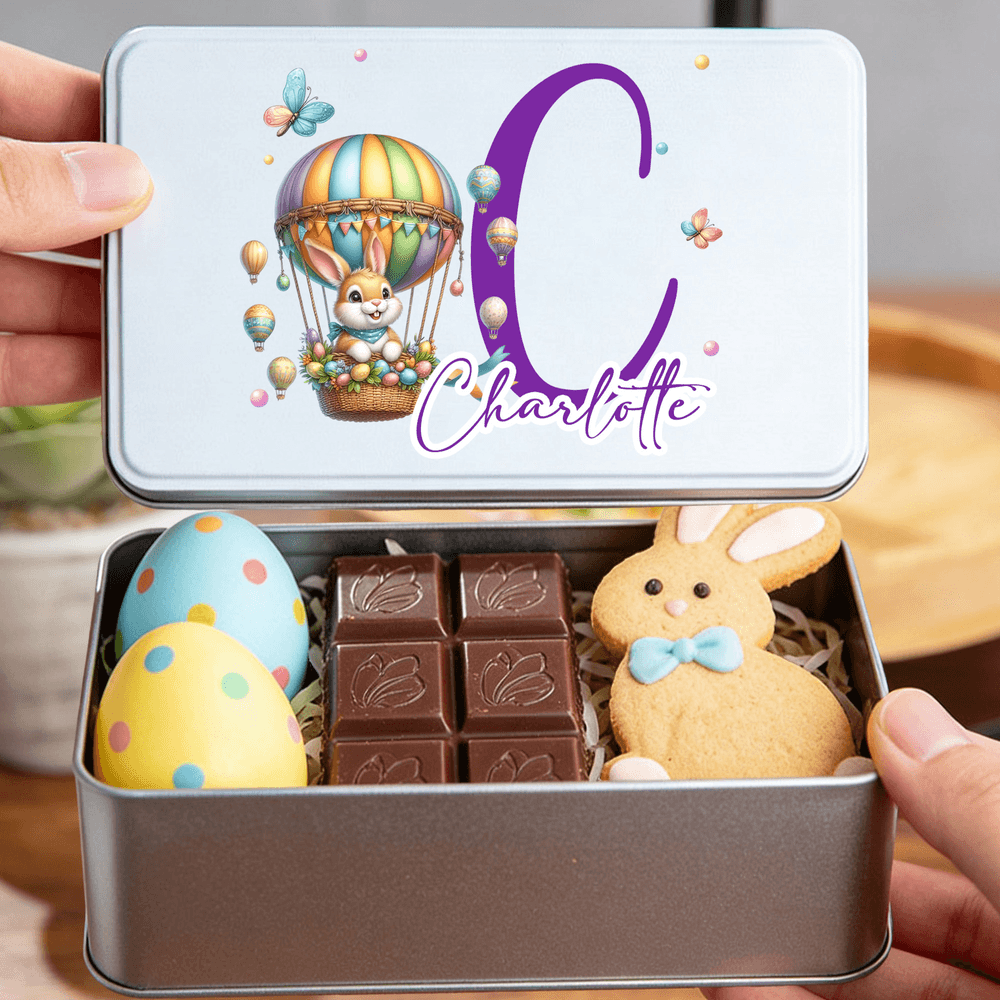 Cadeau idéal pour les fêtes de Pâques, les anniversaires d'enfants ou les surprises saisonnières, cette boîte en fer blanc personnalisée ajoute une chaleur festive et devient un cadeau mémorable pour les enfants et leurs proches.