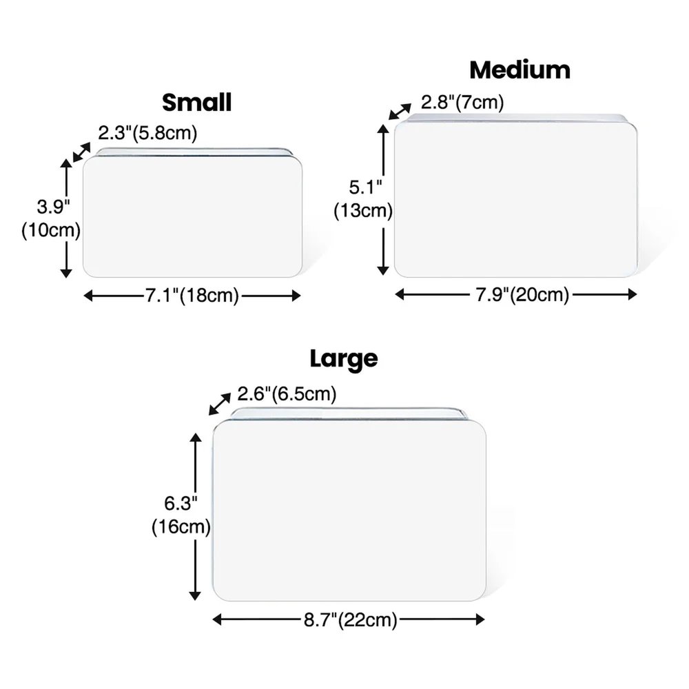 | Mesure: | Petit - 7.1" × 3.9" × 2.3" (18cm × 10cm × 5.8cm) × 2.3"(18cm × 10cm × 5.8cm) Moyen - 7.9" × 5.1" × 2.8"(20cm × 13cm × 7cm) Grand - 8.7" × 6.3" × 2.6"(22cm × 16cm × 6.5cm) |