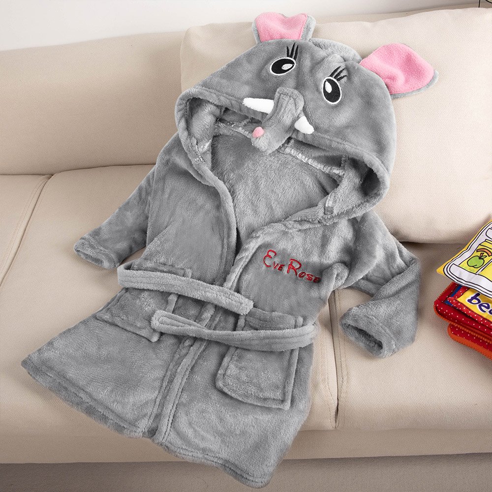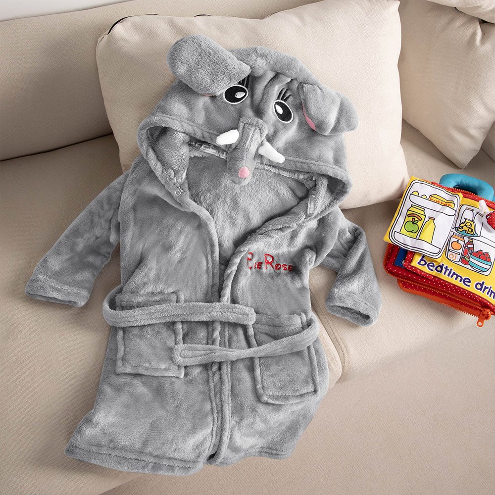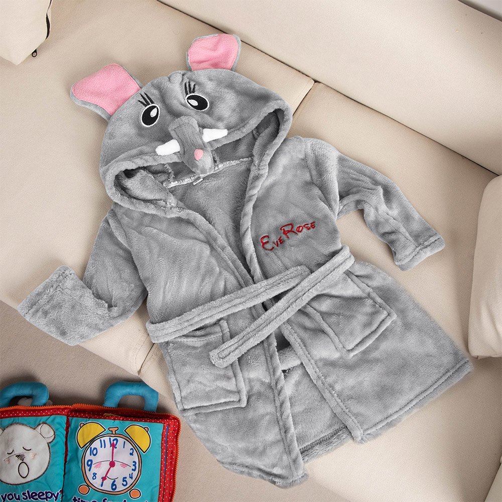 Vous pouvez non seulement dessiner le nom, mais aussi choisir la couleur de la police. Nos robes de chambre élégantes sont parfaites pour les bébés. Enveloppez bébé dans une jolie serviette à capuche sur le thème de l'éléphant pour le garder au sec et au chaud après le bain ! La capuche est une caractéristique extra douillette conçue pour garder le bébé aussi chaud que possible et sécher les cheveux de bébé en douceur et rapidement.