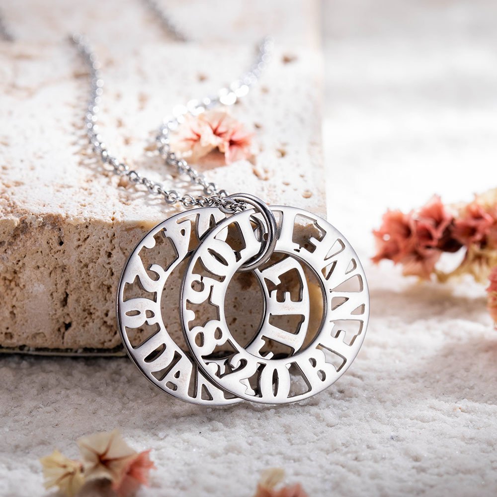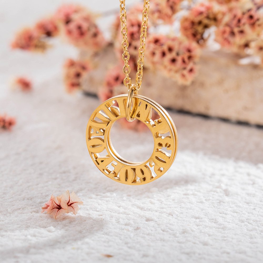 • Le collier anneau est la représentation parfaite de l'amour. Une signification spéciale peut être donnée par le nom d'un être cher ou par une date spéciale. Chaque anneau peut être fabriqué avec des lettres/chiffres. Collier anneau en acier inoxydable. Il est sans nickel, sans plomb et hypoallergénique et respectueux de l'environnement. confortable à porter. Disponible en acier inoxydable et plaqué or. Suivez les instructions pour personnaliser.