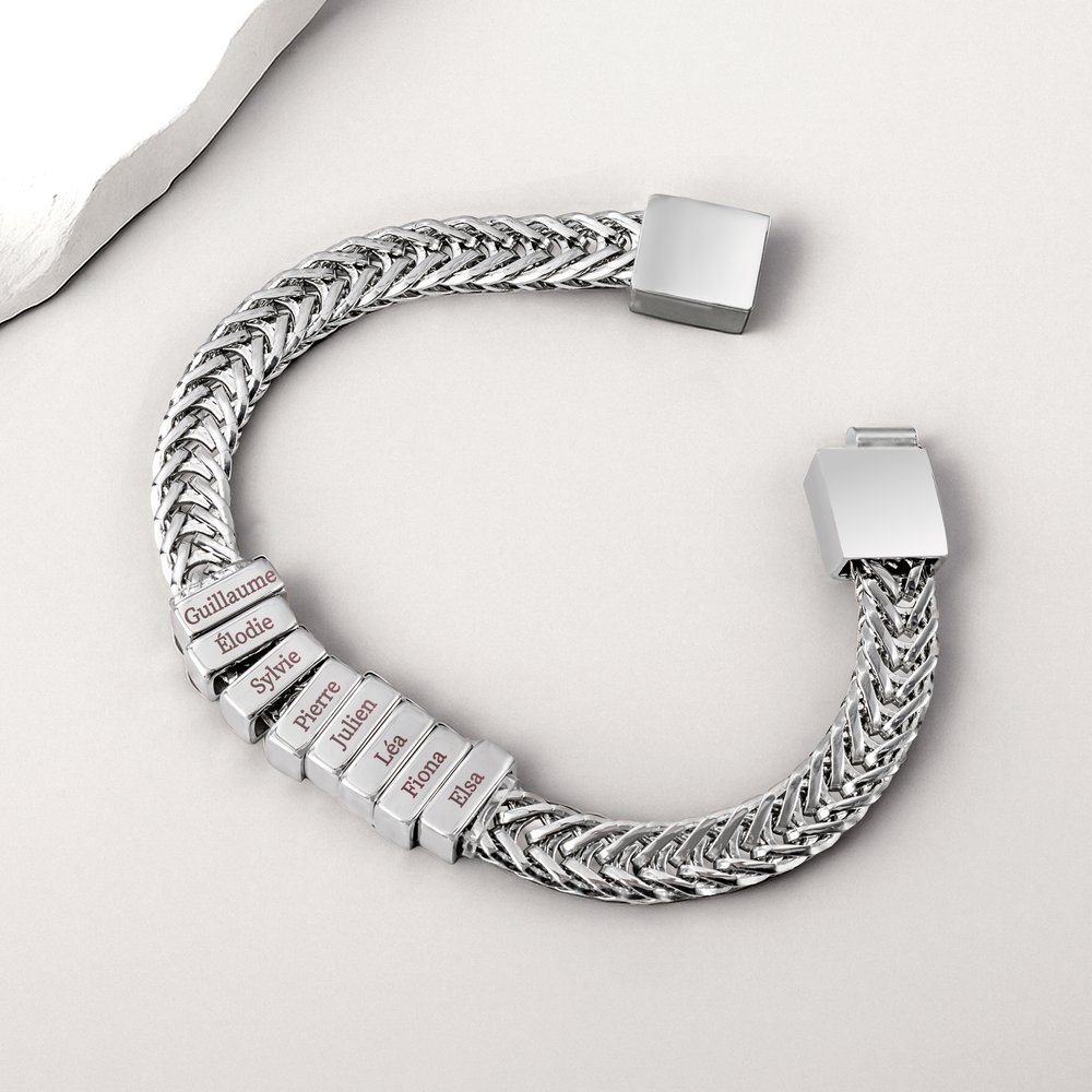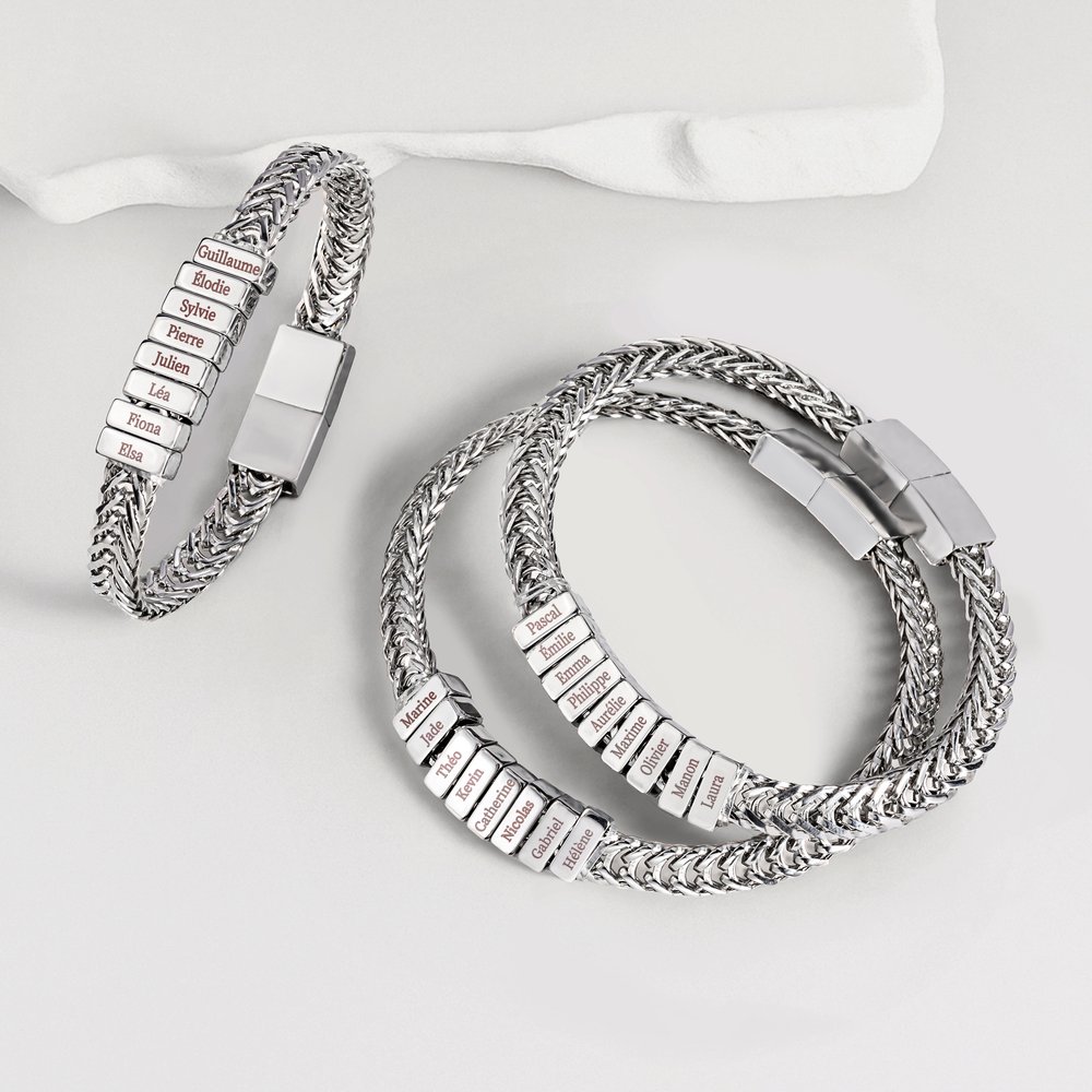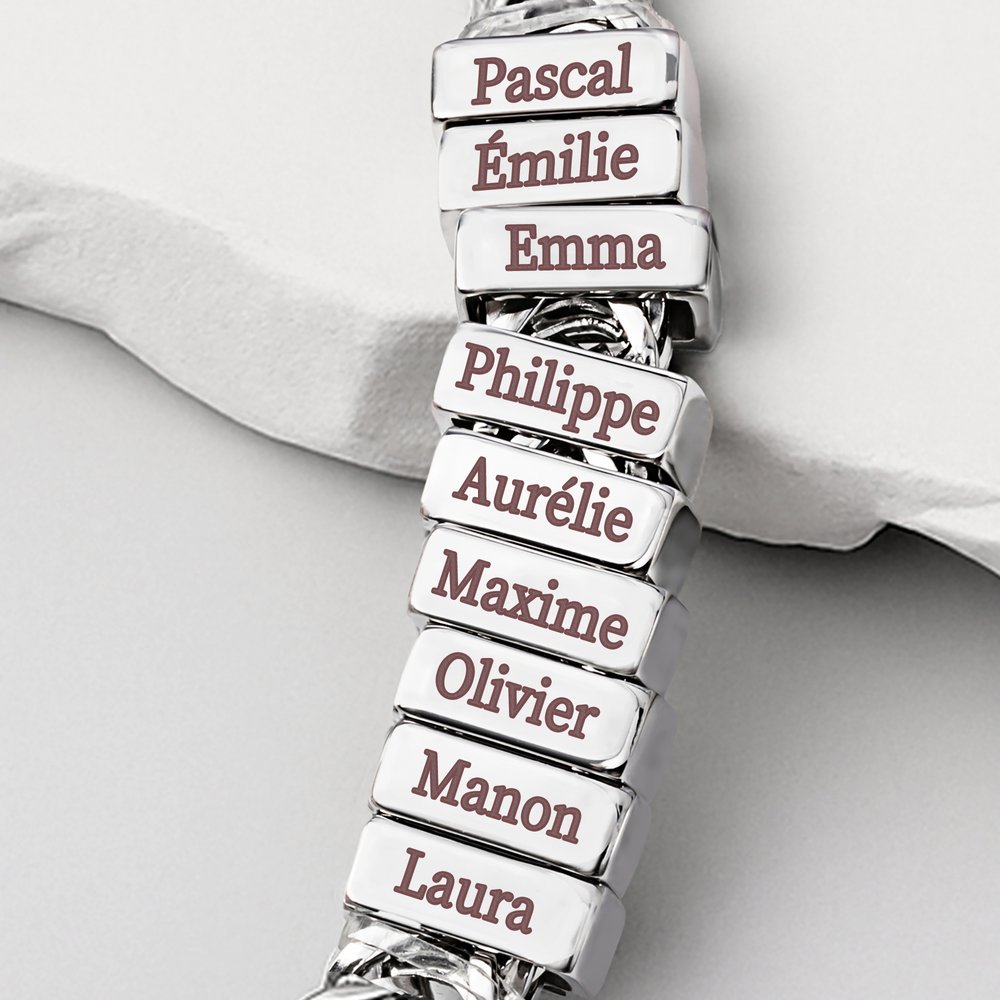 Ce bracelet offre une façon très chaleureuse de personnaliser. Vous pouvez choisir de graver les noms de 1 à 12 enfants ou petits-enfants. Chaque nom est une source d'émotion unique, ce qui fait de ce bracelet un trésor unique et exclusif.