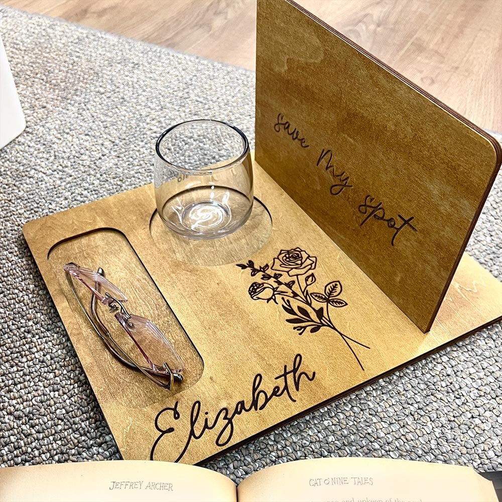Le support de livre en bois sert d'outil fiable pour maintenir les pages ouvertes, ce qui permet aux amateurs de lecture de reprendre leur lecture sans effort. La planche de soutien peut être facilement retirée et utilisée comme marqueur de livre, ce qui leur permet de conserver leur place en toute simplicité. En outre, le porte-gobelet et le porte-lunettes intégrés offrent un espace pratique pour garder leur boisson préférée ou leurs lunettes de lecture à portée de main, garantissant ainsi un plaisir ininterrompu lors de leurs séances de lecture.