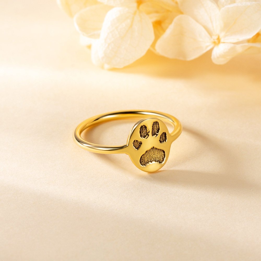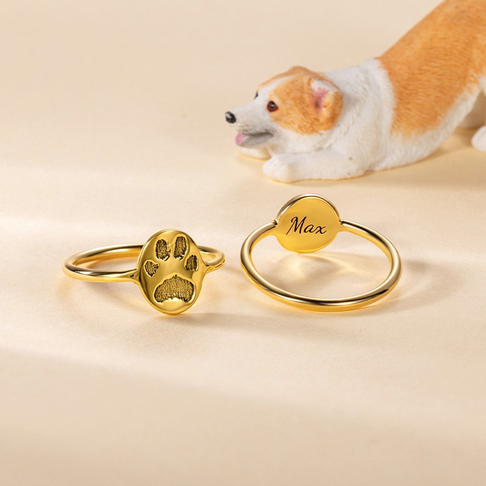 Bague Gravée Personnalisée avec Nom et Patte de l'Animal de Compagnie Cadeau Commémoratif pour Amoureux d'Animal