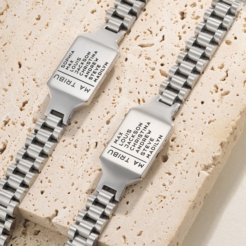 Conçu pour la famille, vous pouvez ajouter les noms ou les anniversaires des membres de votre famille sur le bracelet pour que la personne qui le porte ressente la chaleur de la compagnie, créant ainsi un souvenir unique, un cadeau personnalisé qui sera chéri pour toujours.