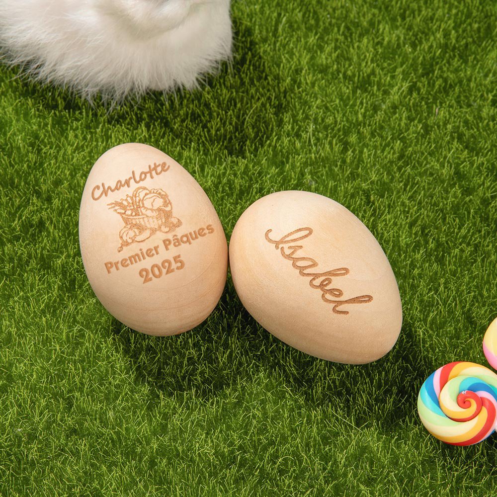 Bois naturel de haute qualité sélectionné, soigneusement poli pour garantir une surface lisse et sans bavures, sûre et respectueuse de l'environnement. Le bois a une texture naturelle, et chaque œuf en bois présente une texture chaude unique. Le processus de sculpture garantit que le texte est clair et durable, qu'il n'est pas facile à décolorer ou à user, et qu'il peut conserver une belle apparence pendant longtemps, devenant ainsi un souvenir précieux.