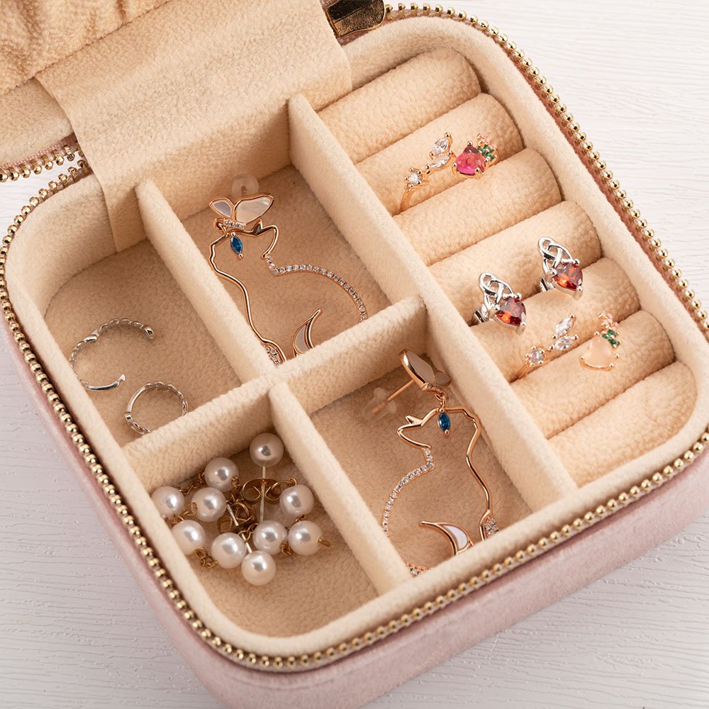 This compact jewelry box is lightweight and fits seamlessly into your suitcase, safeguarding your jewelry's integrity. Whether it's rings, earrings, or delicate bracelets, this box is the perfect travel companion.
