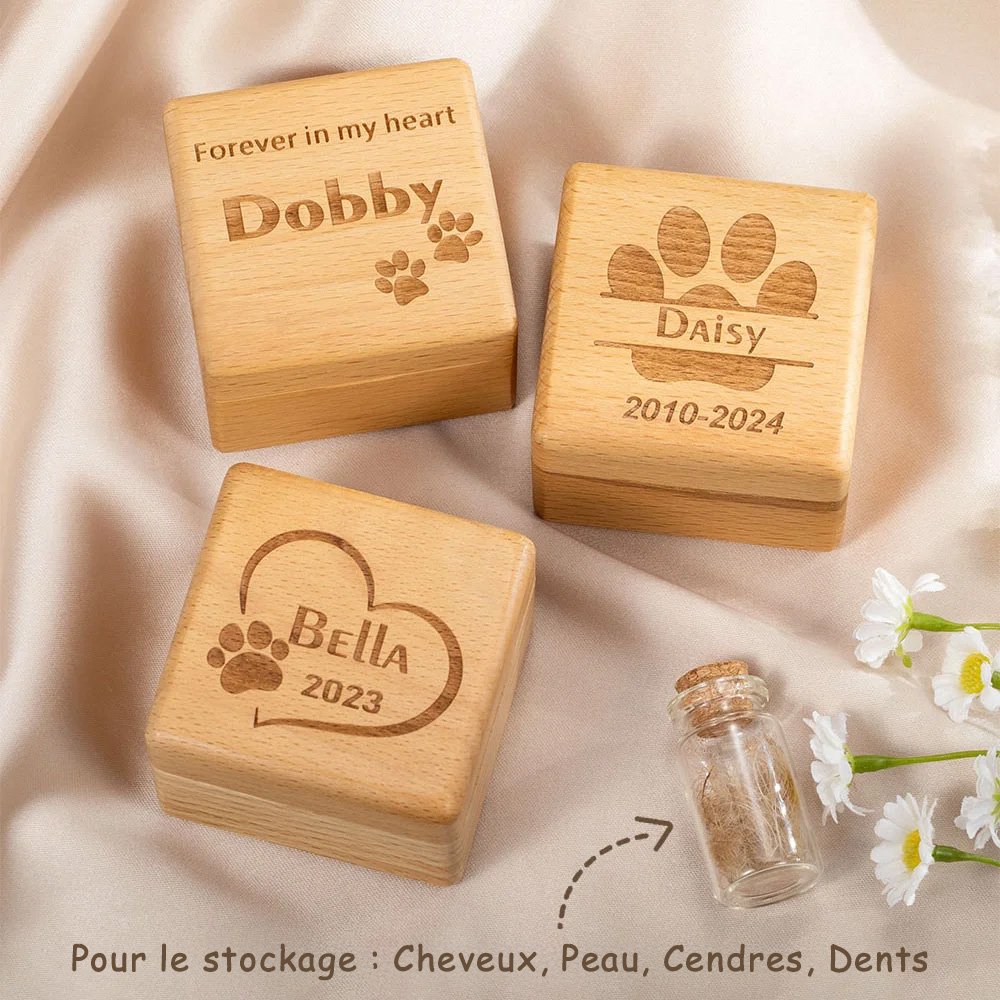 Nos objets personnalisés en bois sont fabriqués en bois de noyer de haute qualité, ce qui garantit leur durabilité et leur capacité à résister à l'épreuve du temps en tant que beau souvenir de votre animal de compagnie bien-aimé.