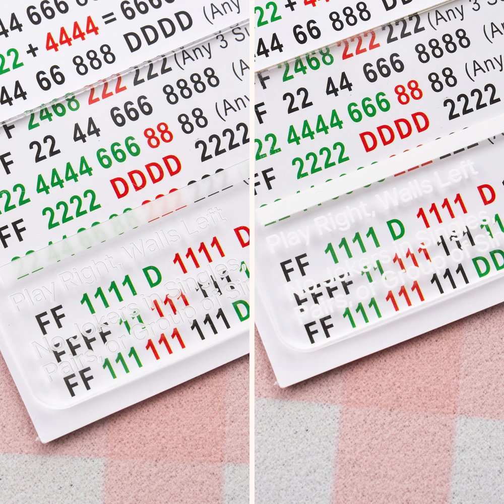 Fabriqué en acrylique de haute qualité et durable, il conserve son aspect élégant même après d'innombrables parties. Nous proposons deux excellentes options de fabrication : la version gravée est élégante et claire sans bloquer les tuiles, tandis que la version imprimée offre plus de choix de couleurs avec des règles et un texte audacieux qui attirent l'attention. L'acrylique transparent permet aux joueurs de se concentrer sur leurs tuiles actuelles et de voir les tuiles environnantes à travers l'indicateur, ce qui facilite l'ajustement des stratégies en cours de partie.
