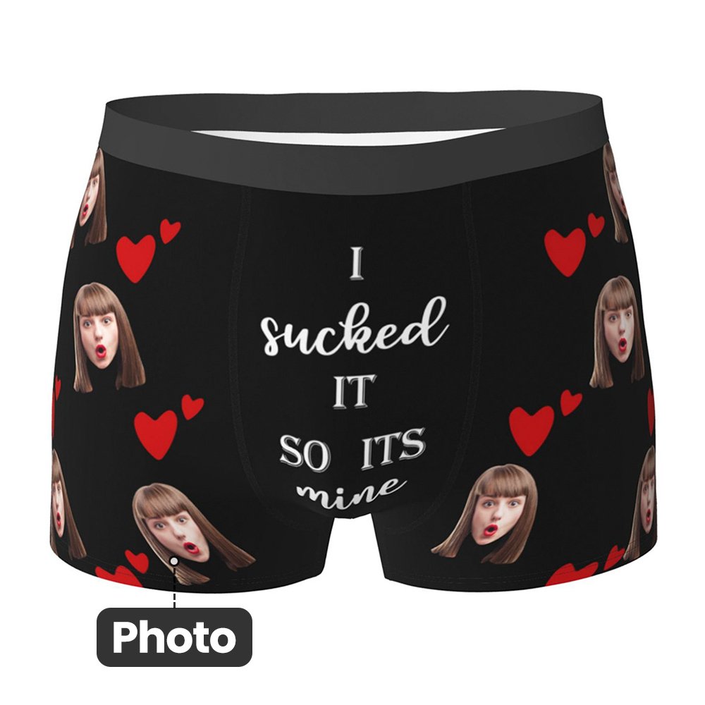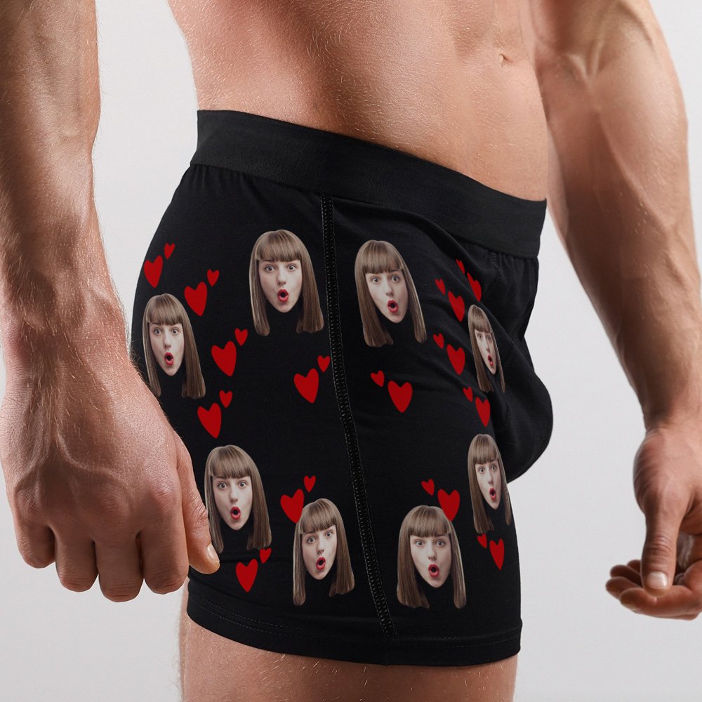 Sous-Vêtement à Coeurs et Texte Drôle Personnalisé avec Photo de Visage Cadeau Anniversaire St-Valentin pour Homme