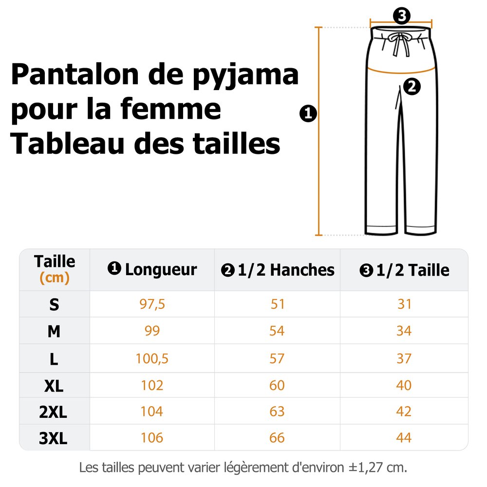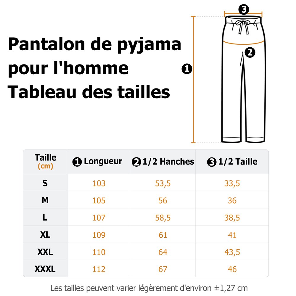Mesure: Pantalon de pyjama pour hommes - S, M, L, XL, XXL, XXXL Pantalon de pyjama pour femmes - S, M, L, XL, 2XL, 3XL Pantalon de pyjama pour enfants - XS, S, M, L