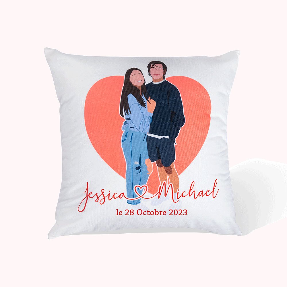 Vous devez télécharger une photo de haute qualité de vous et de la personne que vous aimez pour vous assurer que nous pouvons faire un portrait sans visage parfait pour vous. En outre, vous pouvez également personnaliser le nom et la date sur la housse de coussin. La seule chose à noter est que le nombre de caractères dans le nom doit être limité à 13, et le format de la date doit être fourni dans le format mois + jour + année