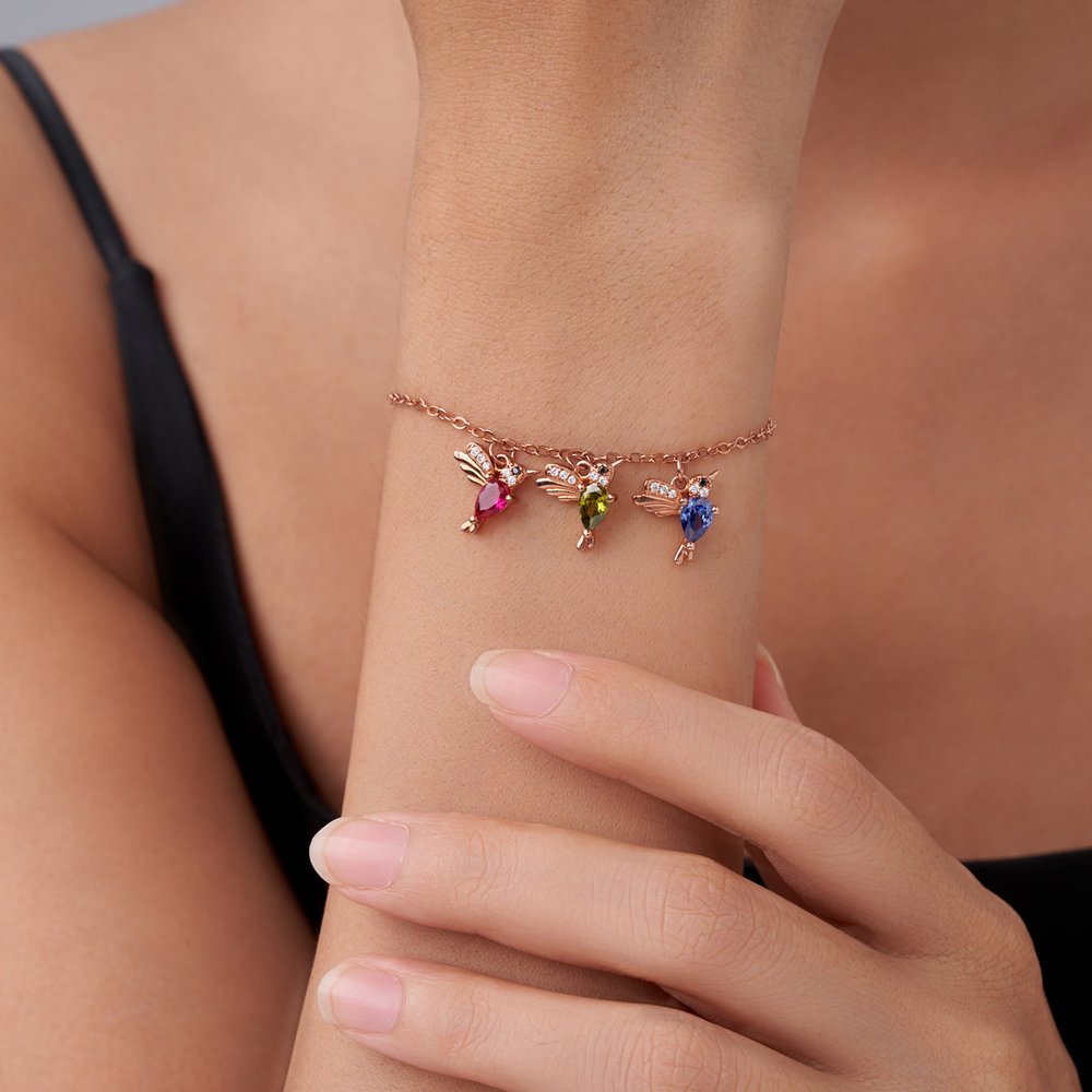 Ce bracelet familial personnalisé avec pierre de naissance colibri est une création sincère qui représente magnifiquement chaque membre de la famille par le biais de leur pierre de naissance respective. Le pendentif colibri exquis sert de pièce maîtresse et symbolise la vitalité et la liberté des liens familiaux.