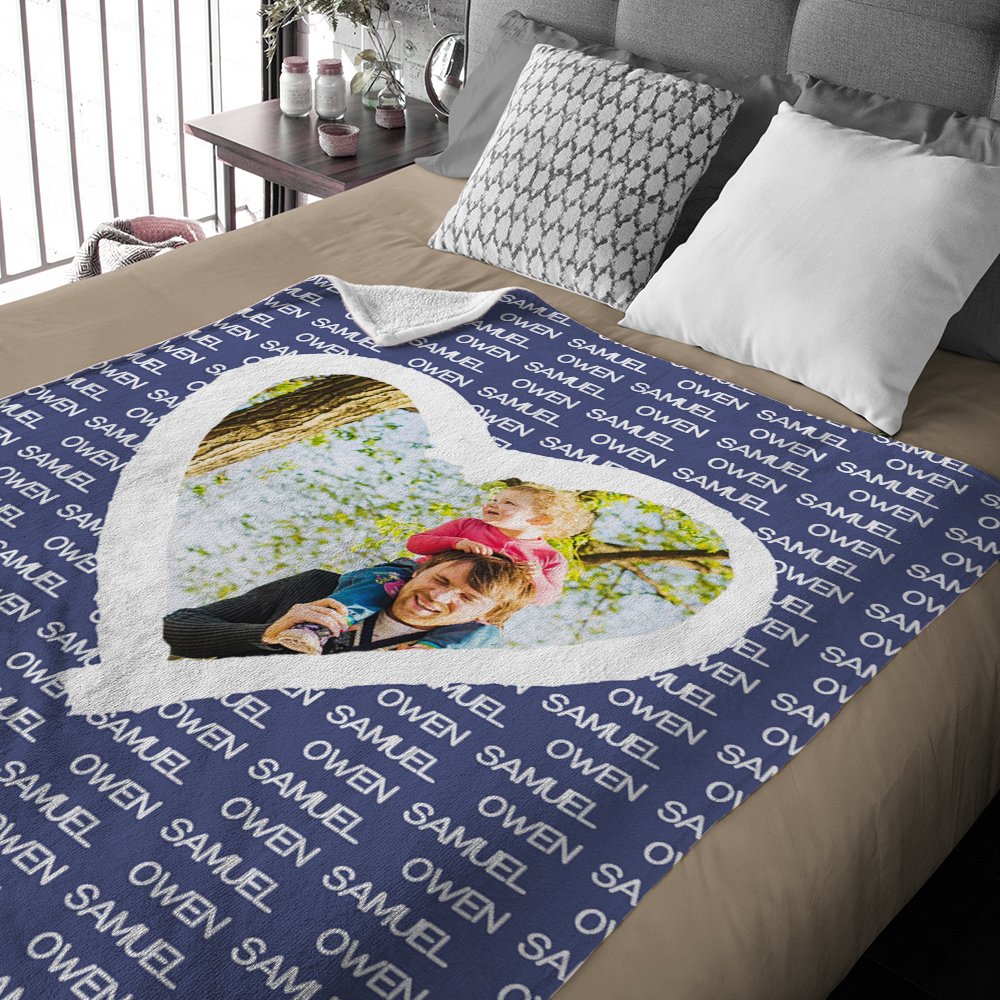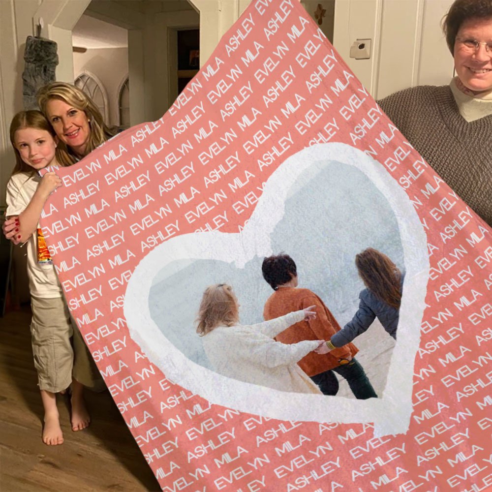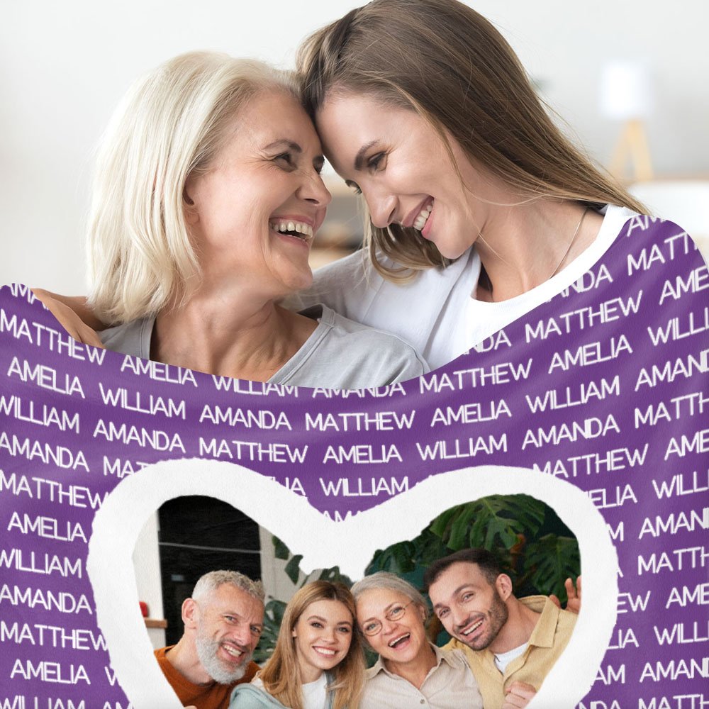 Couverture Douce Multicolore Personnalisée avec 1 à 20 Noms et Photo en Forme de Coeur Cadeau Anniversaire pour Parents Grands-parents