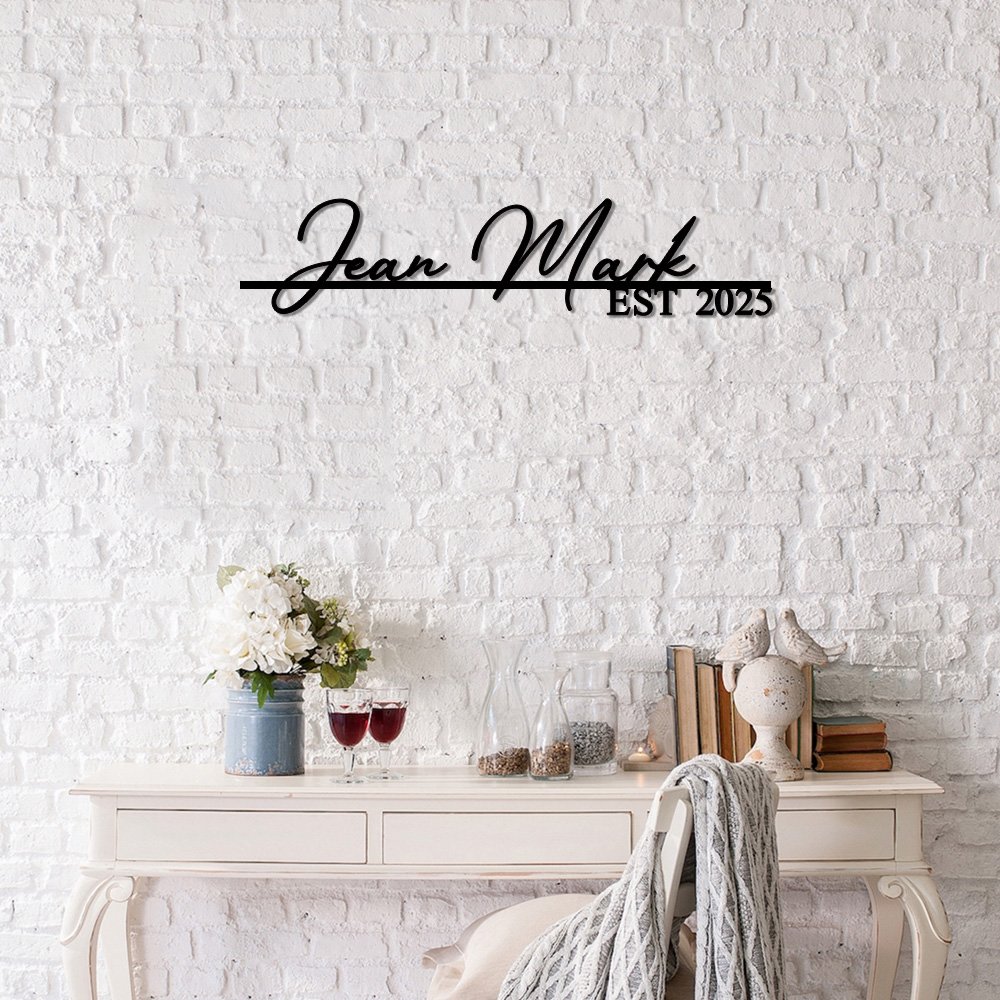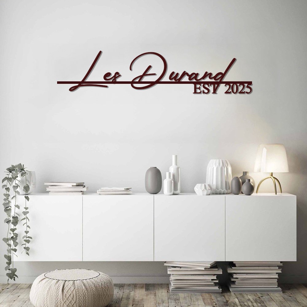 Style personnalisé unique disponible en 6 couleurs et vous pouvez entrer votre nom de famille et l'année personnalisée sous le signe pour créer un logo familial spécial.