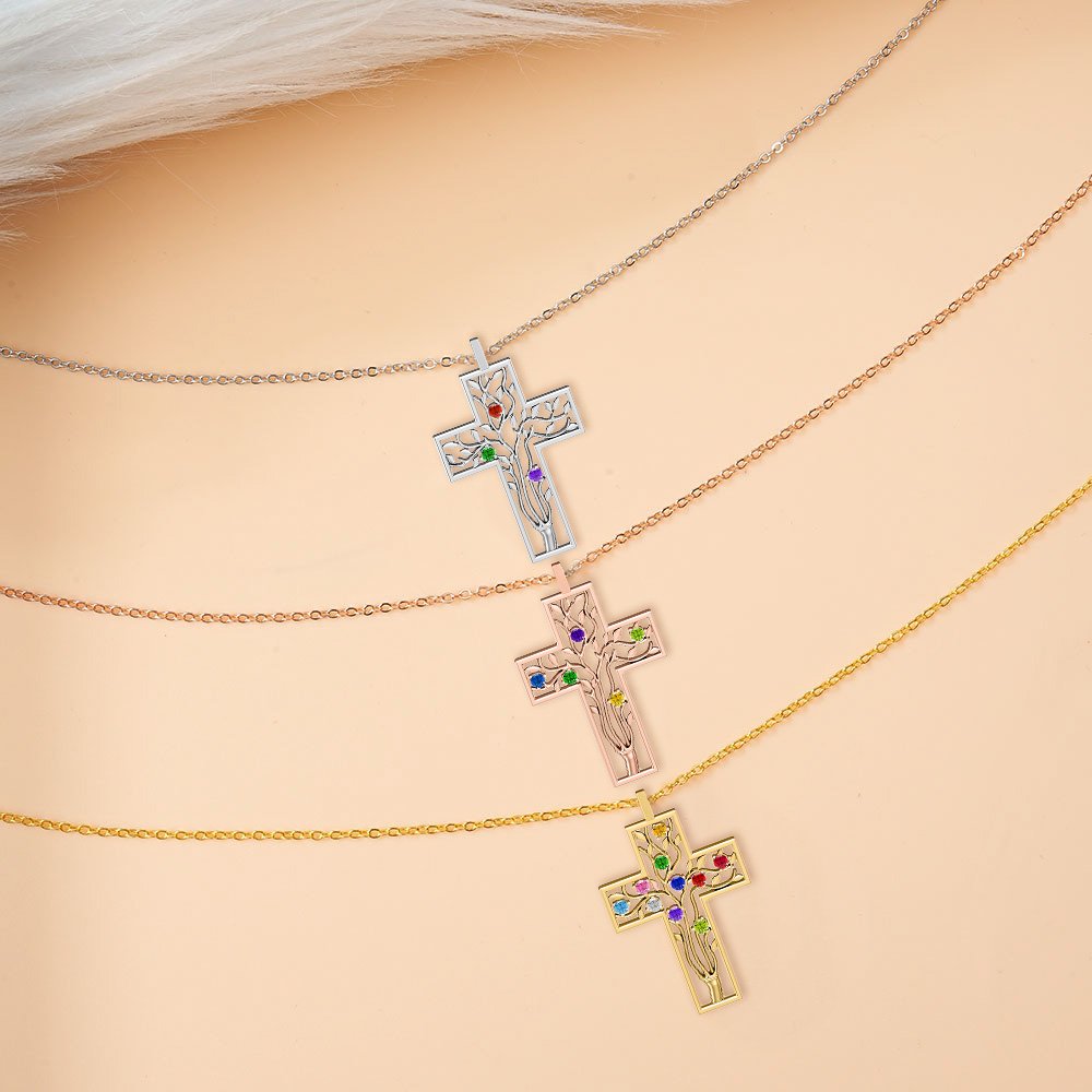 Méticuleusement confectionné, ce collier est fabriqué à partir de manière en laiton ou en argent sterling. L'arbre généalogique et la croix sont conçus de manière complexe, avec de fins détails qui mettent en valeur le travail artistique. Les pierres de naissance sont soigneusement serties, ce qui leur permet de rester en place et de briller de mille feux. La chaîne est durable et agréable à porter, ce qui rend ce collier adapté à un usage quotidien sans compromettre son attrait esthétique ou sa valeur symbolique.